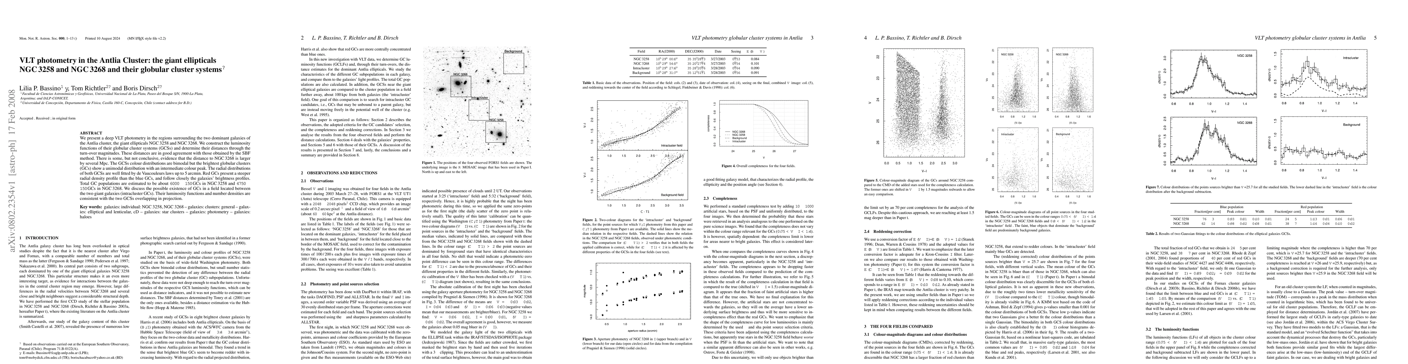 Researchers studied the giant ellipticals NGC 3258 and NGC 3268 in the Antlia cluster using VLT photometry, finding two bimodal globular cluster systems with distinct color distributions and radial density profiles, and estimating a total population of around 6000 GCs for NGC 3258 and 4750 GCs for NGC 3268.