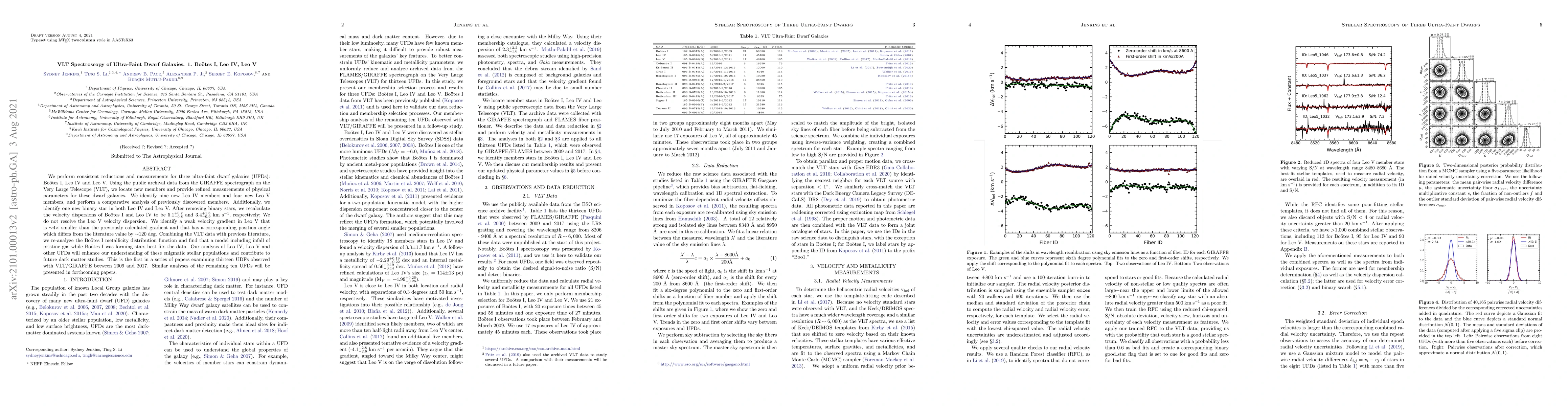 This paper uses VLT spectroscopy to refine measurements of three ultra-faint dwarf galaxies, identifying new members and binary stars, and recalculating their velocity dispersions. The analysis suggests a model of gas infall for Bo\"otes I and a reduced velocity gradient for Leo V, contributing to the understanding of these stellar populations.