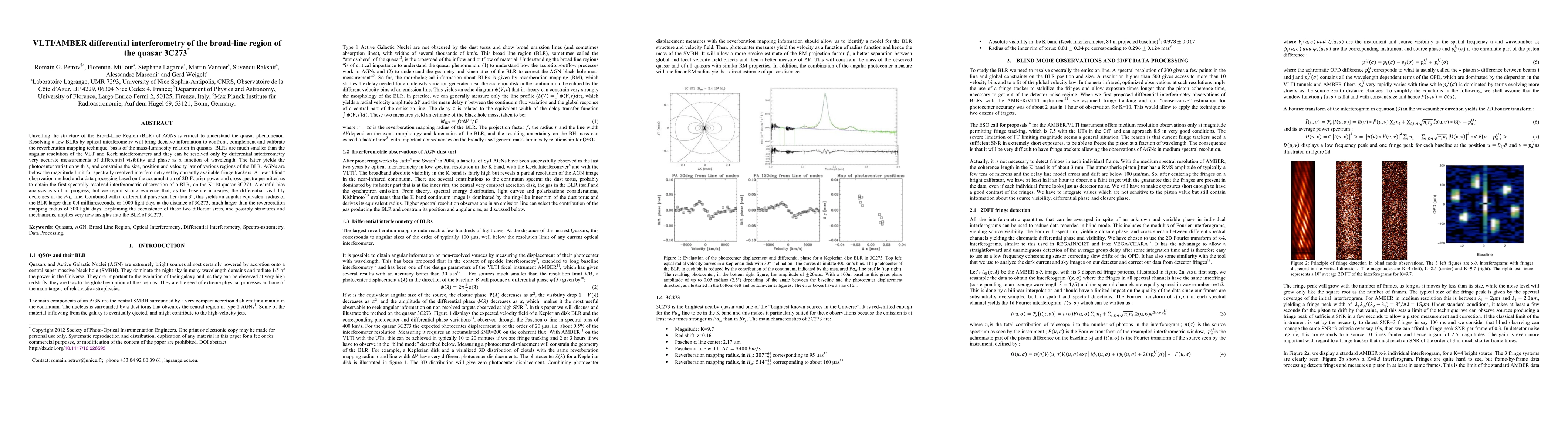 Unveiling the structure of the Broad Line Region (BLR) of AGNs is critical to understand the quasar phenomenon. Resolving a few BLRs by optical interferometry will bring decisive information to confront, complement and calibrate the reverberation mapping technique, basis of the mass-luminosity relation in quasars. BLRs are much smaller than the angular resolution of the VLT and Keck interferometers and they can be resolved only by differential interferometry very accurate measurements of differential visibility and phase as a function of wavelength. The latter yields the photocenter variation with wavelength, and constrains the size, position and velocity law of various regions of the BLR. AGNs are below the magnitude limit for spectrally resolved interferometry set by currently available fringe trackers. A new "blind" observation method and a data processing based on the accumulation of 2D Fourier power and cross spectra permitted us to obtain the first spectrally resolved interferometric observation of a BLR, on the K=10 quasar 3C273. A careful bias analysis is still in progress, but we report strong evidence that, as the baseline increases, the differential visibility decreases in the Pa-alpha line. Combined with a differential phase smaller than 3 degree, this yields an angular equivalent radius of the BLR larger than 0.4 milliarcseconds, or 1000 light days at the distance of 3C273, much larger than the reverberation mapping radius of 300 light days. Explaining the coexistence of these two different sizes, and possibly structures and mechanisms, implies very new insights into the BLR of 3C273
