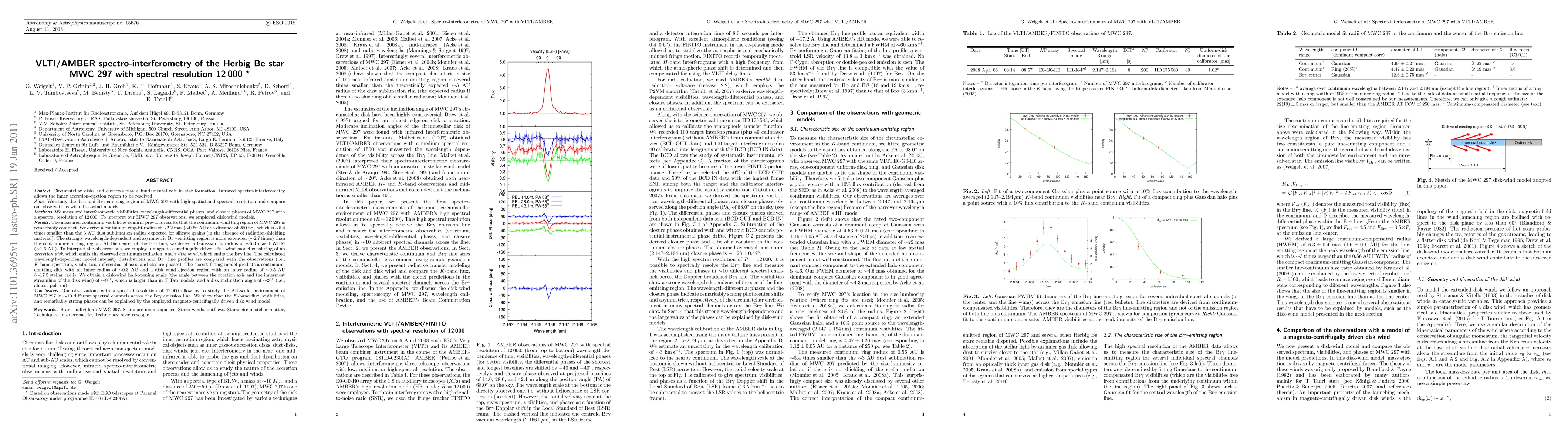 Circumstellar disks and outflows play a fundamental role in star formation. Infrared spectro-interferometry allows the inner accretion-ejection region to be resolved. We measured interferometric visibilities, wavelength-differential phases, and closure phases of MWC 297 with a spectral resolution of 12000. To interpret our MWC 297 observations, we employed disk-wind models. The measured continuum visibilities confirm previous results that the continuum-emitting region of MWC 297 is remarkably compact. We derive a continuum ring-fit radius of ~2.2 mas (~0.56 AU at a distance of 250 pc), which is ~5.4 times smaller than the 3 AU dust sublimation radius expected for silicate grains (in the absence of radiation-shielding material). The strongly wavelength-dependent and asymmetric Br gamma-emitting region is more extended (~2.7 times) than the continuum-emitting region. At the center of the Br gamma line, we derive a Gaussian fit radius of ~6.3 mas HWHM (~1.6 AU). To interpret the observations, we employ a magneto-centrifugally driven disk-wind model consisting of an accretion disk, which emits the observed continuum radiation, and a disk wind, which emits the Br gamma line. The calculated wavelength-dependent model intensity distributions and Br gamma line profiles are compared with the observations (i.e., K-band spectrum, visibilities, differential phases, and closure phases). The closest fitting model predicts a continuum-emitting disk with an inner radius of ~0.3 AU and a disk wind ejection region with an inner radius of ~0.5 AU (~17.5 stellar radii). We obtain a disk-wind half-opening angle (the angle between the rotation axis and the innermost streamline of the disk wind) of ~80 degrees, which is larger than in T Tau models, and a disk inclination angle of ~20 degrees (i.e., almost pole-on).