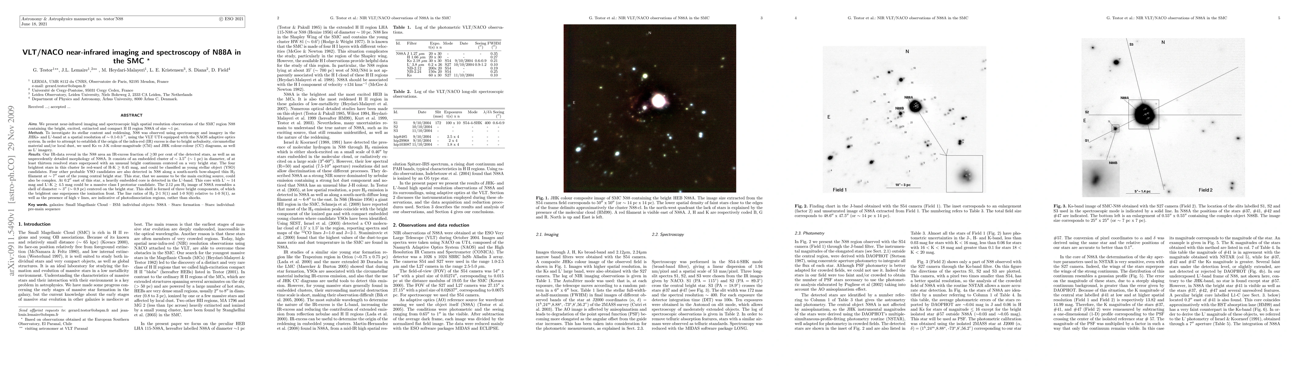 This paper presents high-resolution near-infrared imaging and spectroscopy of the N88A H II region in the Small Magellanic Cloud (SMC), revealing an infrared excess of at least 30% among stars and identifying several young stellar object (YSO) candidates, including a potential massive protostar. The data suggest photodissociation regions rather than shocks are responsible for the observed H2 lines.