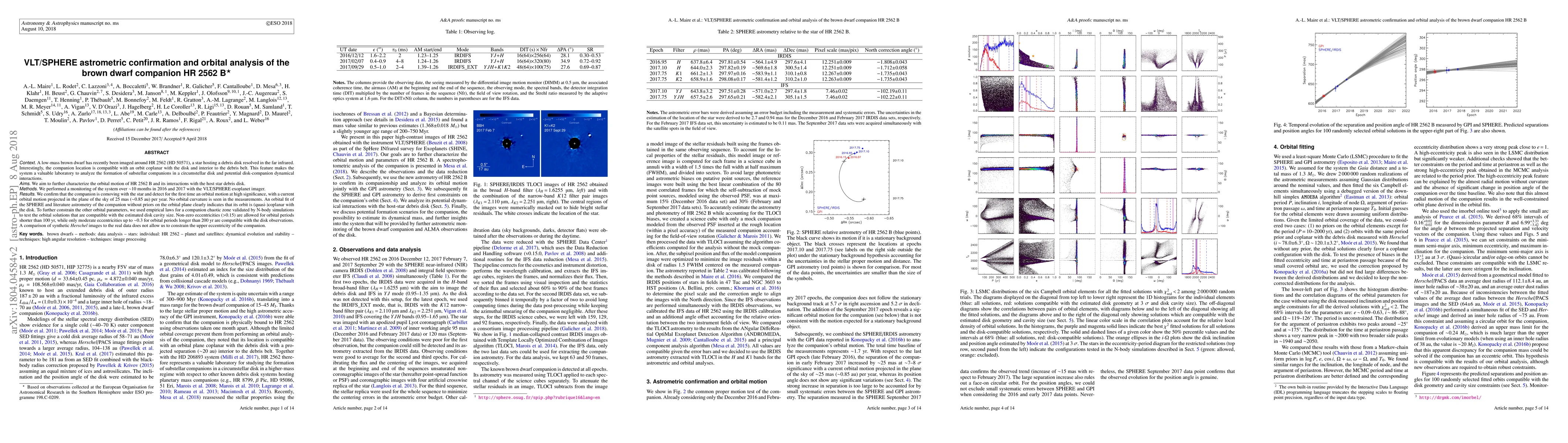 The VLT/SPHERE astrometric monitoring confirms the orbital motion of the brown dwarf companion HR 2562 B, revealing it to be co-moving with the star and exhibiting a nearly coplanar orbit with the host star's debris disk. The study constrains the orbital eccentricity and period, suggesting potential dynamical interactions between the companion and the disk.