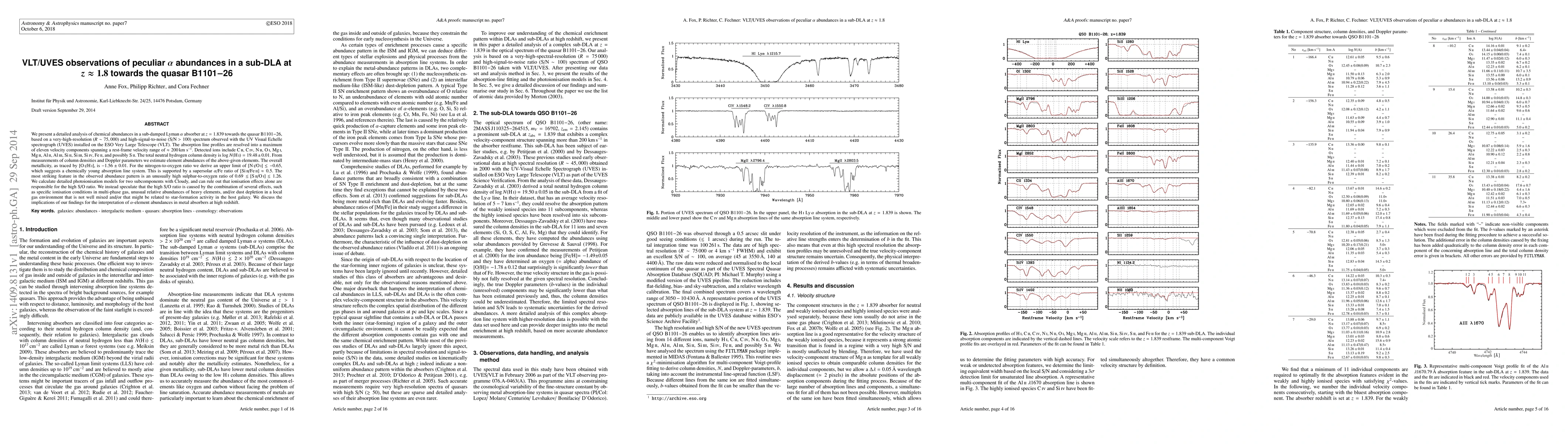 We present a detailed analysis of chemical abundances in a sub-damped Lyman alpha absorber at z=1.839 towards the quasar B1101-26, based on a very-high-resolution (R ~ 75,000) and high-signal-to-noise (S/N >100) spectrum observed with the UV Visual Echelle spectrograph (UVES) installed on the ESO Very Large Telescope (VLT). The absorption line profiles are resolved into a maximum of eleven velocity components spanning a rest-frame velocity range of 200 km/s. Detected ions include CII, CIV, NII, OI, MgI, MgII, AlII, AlIII, SiII, SiIII, SiIV, FeII, and possibly SII. The total neutral hydrogen column density is log N(HI) = 19.48 +/- 0.01. From measurements of column densities and Doppler parameters we estimate element abundances of the above-given elements. The overall metallicity, as traced by [OI/HI], is -1.56 +/- 0.01. For the nitrogen-to-oxygen ratio we derive an upper limit of [NI/OI] < -0.65, which suggests a chemically young absorption line system. This is supported by a supersolar alpha/Fe ratio of [SiII/FeII] ~ 0.5. The most striking feature in the observed abundance pattern is an unusually high sulphur-to-oxygen ratio of 0.69 < [SII/OI] < 1.26. We calculate detailed photoionisation models for two subcomponents with Cloudy, and can rule out that ionisation effects alone are responsible for the high S/O ratio. We instead speculate that the high S/O ratio is caused by the combination of several effects, such as specific ionisation conditions in multi-phase gas, unusual relative abundances of heavy elements, and/or dust depletion in a local gas environment that is not well mixed and/or that might be related to star-formation activity in the host galaxy. We discuss the implications of our findings for the interpretation of alpha-element abundances in metal absorbers at high redshift.