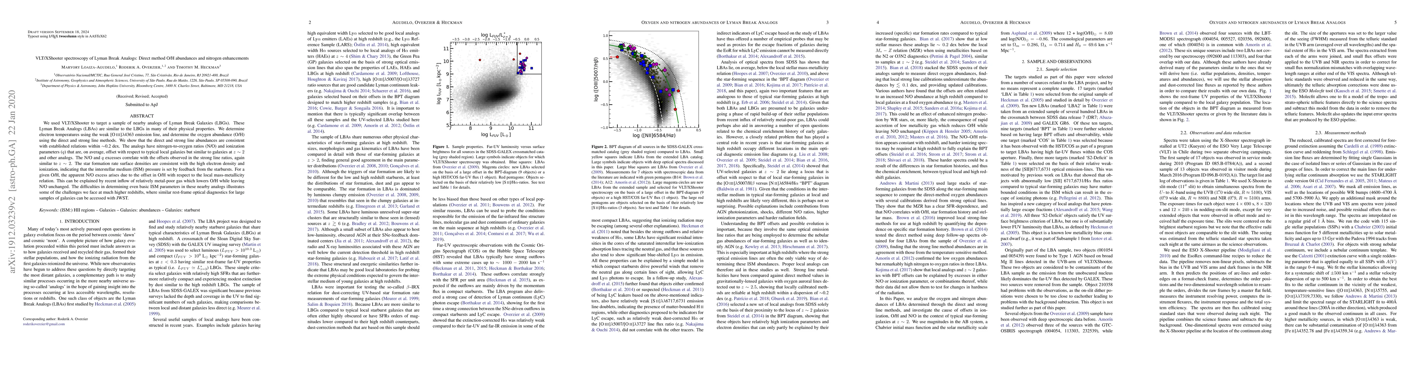 This study uses spectroscopy to measure oxygen abundance and nitrogen enhancements in Lyman Break Analogs, finding consistent results with established relations and implications for galaxy evolution and star formation.