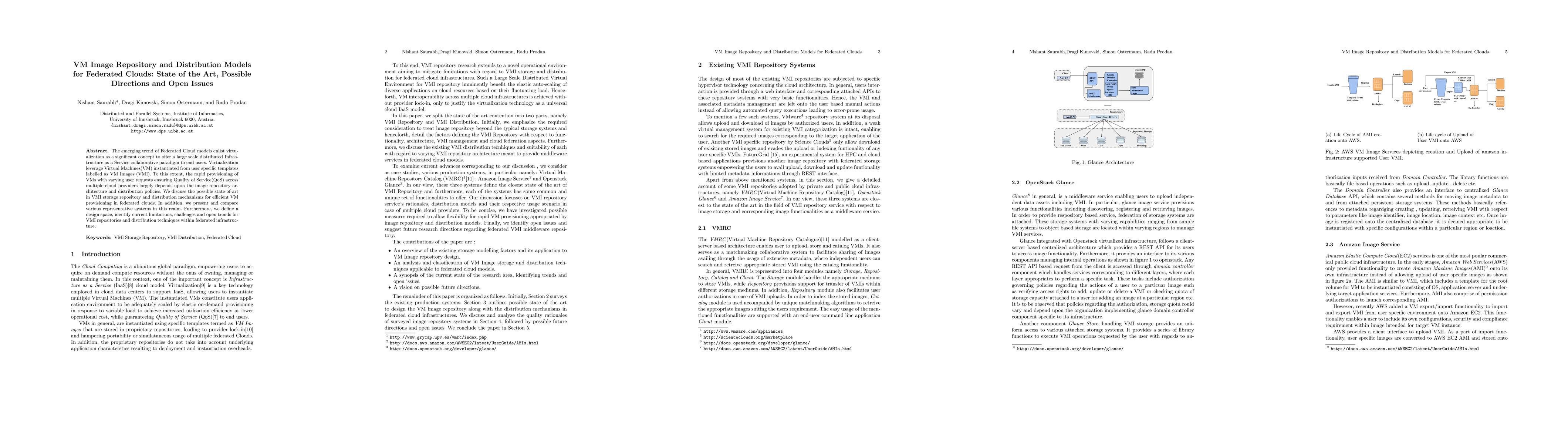 This paper discusses the current state of VM Image Repositories and Distribution Models for Federated Clouds, highlighting key systems and their comparison. It also identifies limitations, challenges, and future trends in this area.
