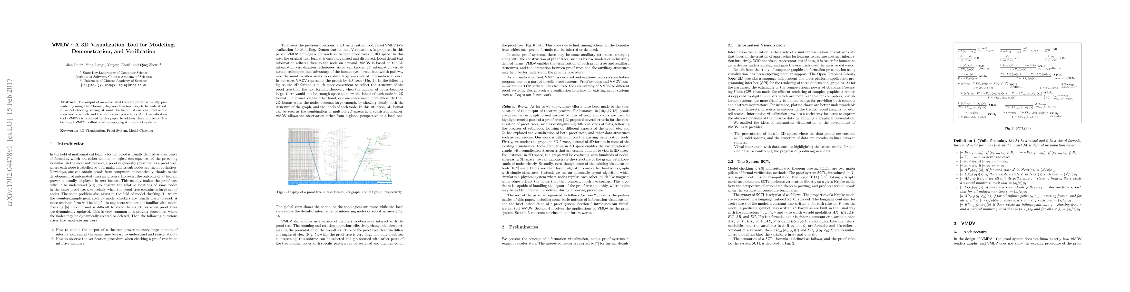 A 3D visualization tool called VMDV is proposed to help understand complex theorem prover outputs, enabling users to visualize model structures and verification procedures.
