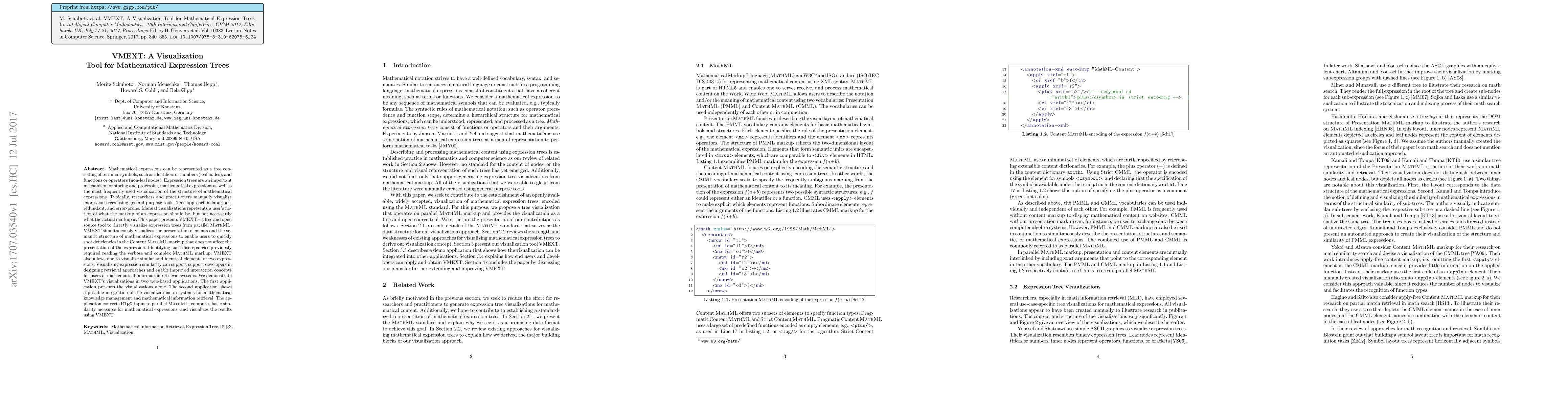A new tool called VMEXT allows users to directly visualize mathematical expression trees from parallel MathML, enabling quick identification of discrepancies in the presentation markup.