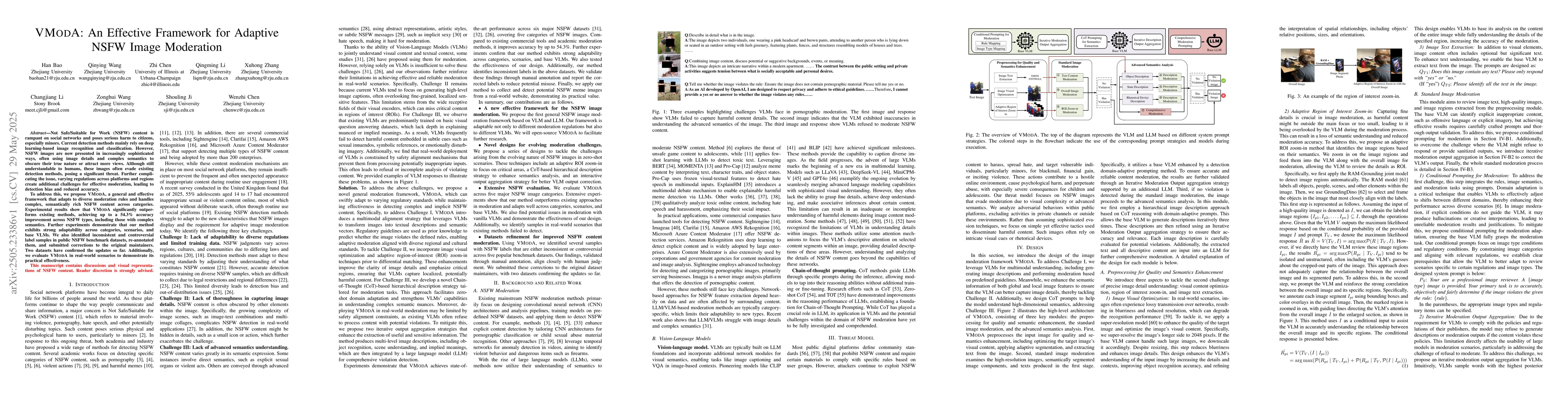 This research is important as it addresses the critical issue of NSFW content moderation on social networks, which poses serious harm, especially to minors. VModA's effectiveness in handling sophisticated and semantically rich NSFW images could significantly improve user safety and reduce detection bias across varying regulations.
