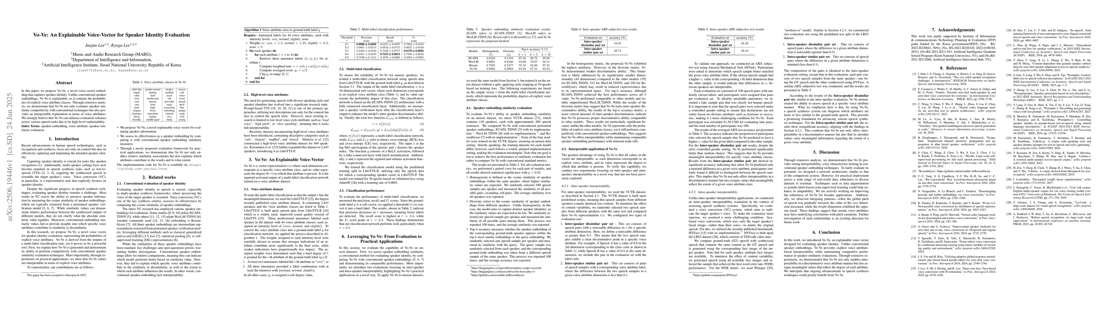 In this paper, we propose Vo-Ve, a novel voice-vector embedding that captures speaker identity. Unlike conventional speaker embeddings, Vo-Ve is explainable, as it contains the probabilities of explicit voice attribute classes. Through extensive analysis, we demonstrate that Vo-Ve not only evaluates speaker similarity competitively with conventional techniques but also provides an interpretable explanation in terms of voice attributes. We strongly believe that Vo-Ve can enhance evaluation schemes across various speech tasks due to its high-level explainability.