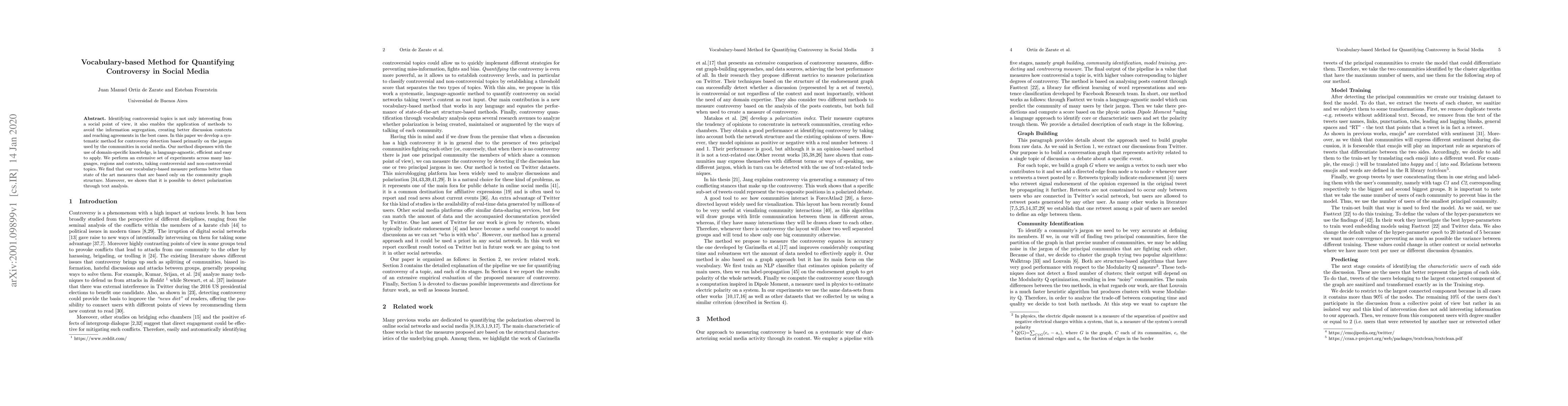 This paper introduces a vocabulary-based method for detecting controversy in social media, relying on community-specific jargon rather than domain-specific knowledge. Experiments across various languages and contexts show that this method outperforms existing graph-based measures, effectively identifying polarization through text analysis.