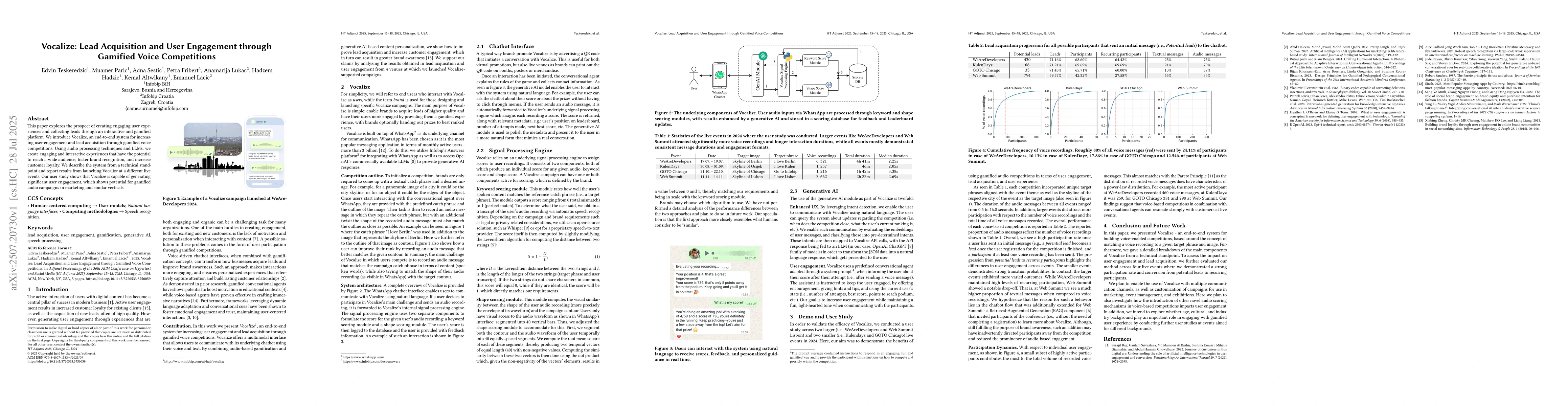 This research is important as it presents Vocalize, a system capable of enhancing user engagement and lead acquisition through gamified voice competitions, which can be beneficial for marketing, event management, and exhibitions.