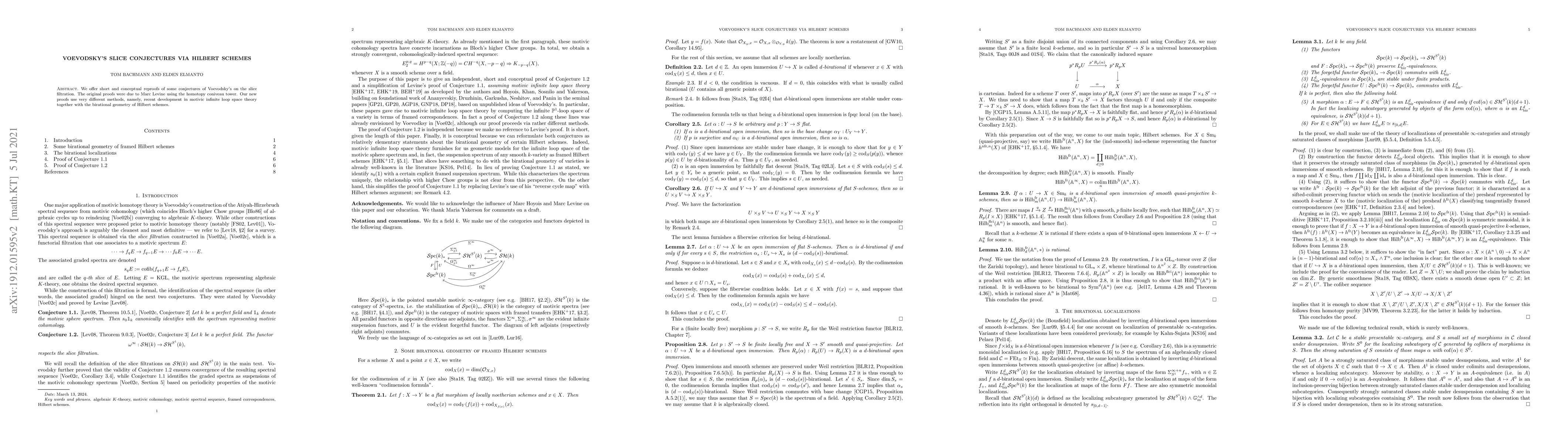 This paper provides new conceptual proofs of Voevodsky's slice conjectures leveraging motivic infinite loop space theory and the birational geometry of Hilbert schemes, contrasting with Levine's original proofs using the homotopy coniveau tower.