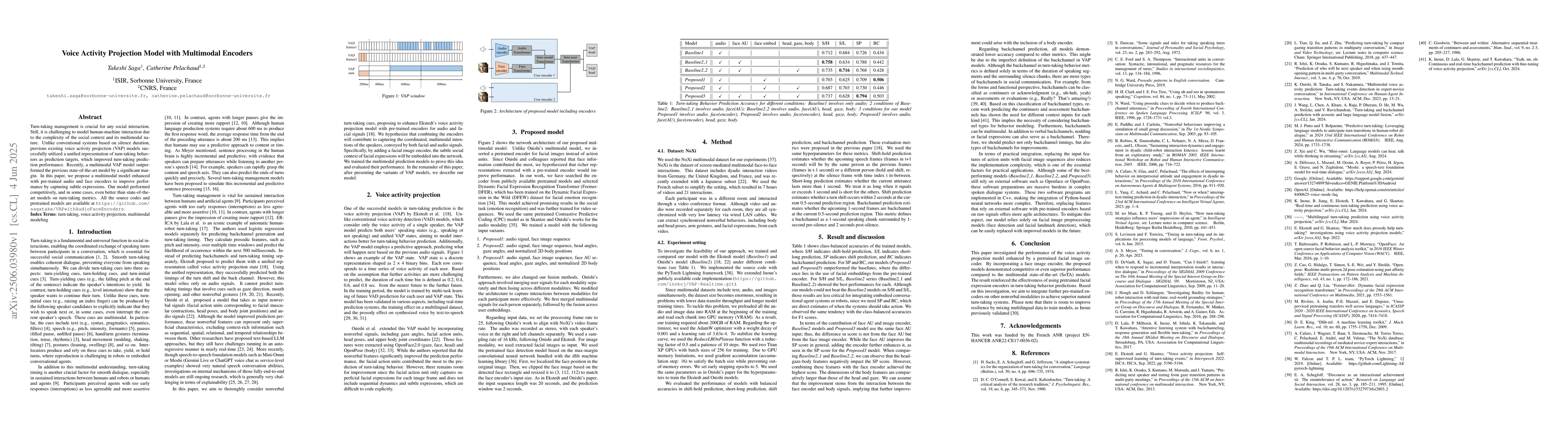 The paper proposes a multimodal Voice Activity Projection (VAP) model that incorporates pre-trained audio and face encoders to enhance turn-taking prediction performance in human-machine interactions.