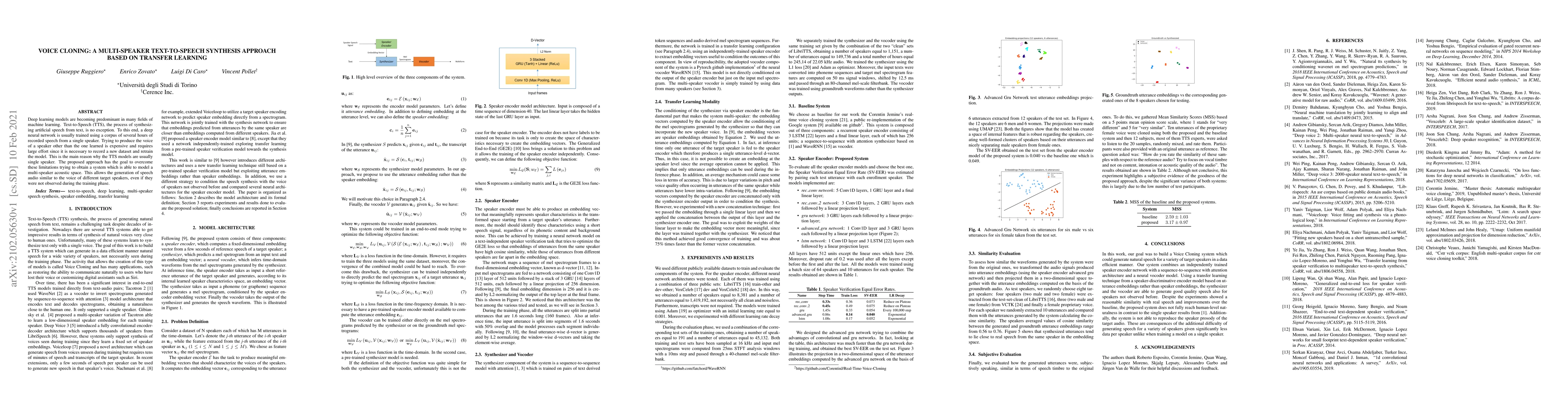 Deep learning models are becoming predominant in many fields of machine learning. Text-to-Speech (TTS), the process of synthesizing artificial speech from text, is no exception. To this end, a deep neural network is usually trained using a corpus of several hours of recorded speech from a single speaker. Trying to produce the voice of a speaker other than the one learned is expensive and requires large effort since it is necessary to record a new dataset and retrain the model. This is the main reason why the TTS models are usually single speaker. The proposed approach has the goal to overcome these limitations trying to obtain a system which is able to model a multi-speaker acoustic space. This allows the generation of speech audio similar to the voice of different target speakers, even if they were not observed during the training phase.