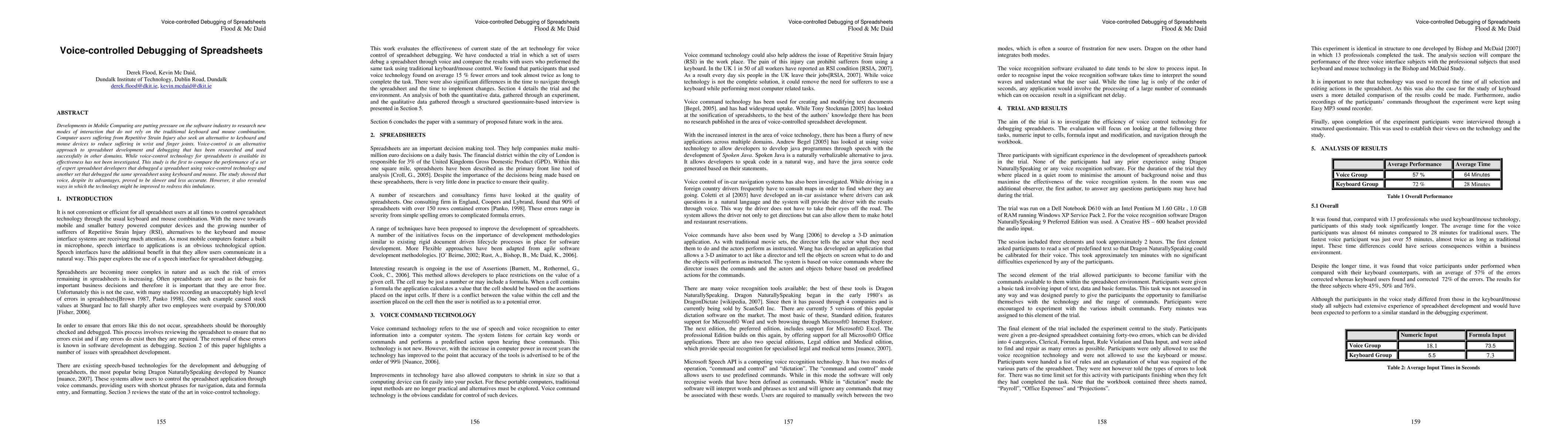 A study compared voice-control and keyboard/mouse interaction for spreadsheet debugging, finding voice control to be slower and less accurate but revealing potential improvements.