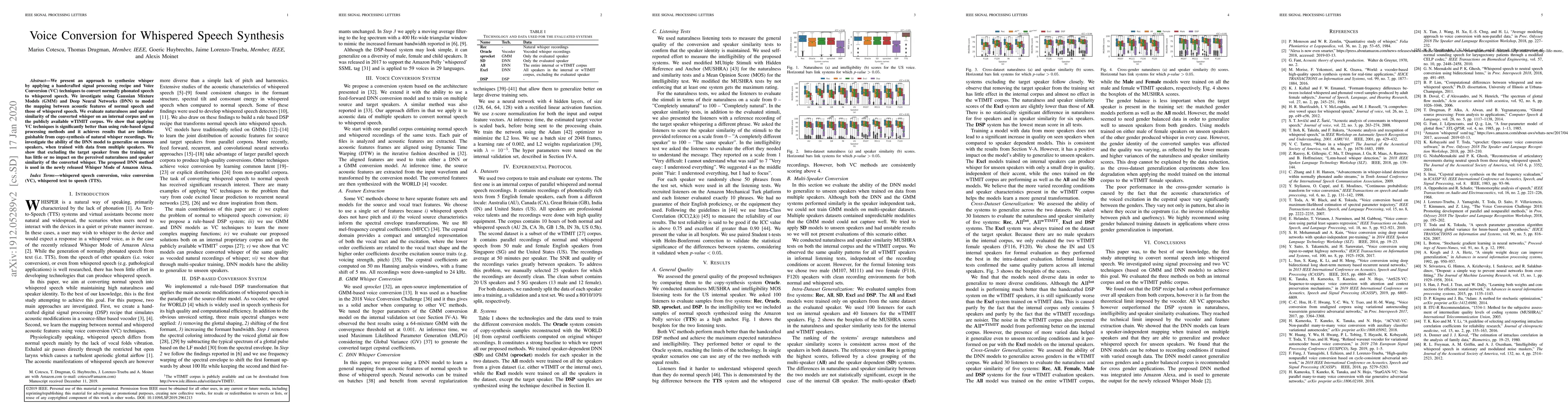This paper proposes a voice conversion technique for synthesizing whispered speech using Gaussian Mixture Models and Deep Neural Networks, showing superior performance over rule-based methods. The DNN model demonstrates effective generalization to unseen speakers, leading to its implementation in Amazon Alexa's Whisper Mode.