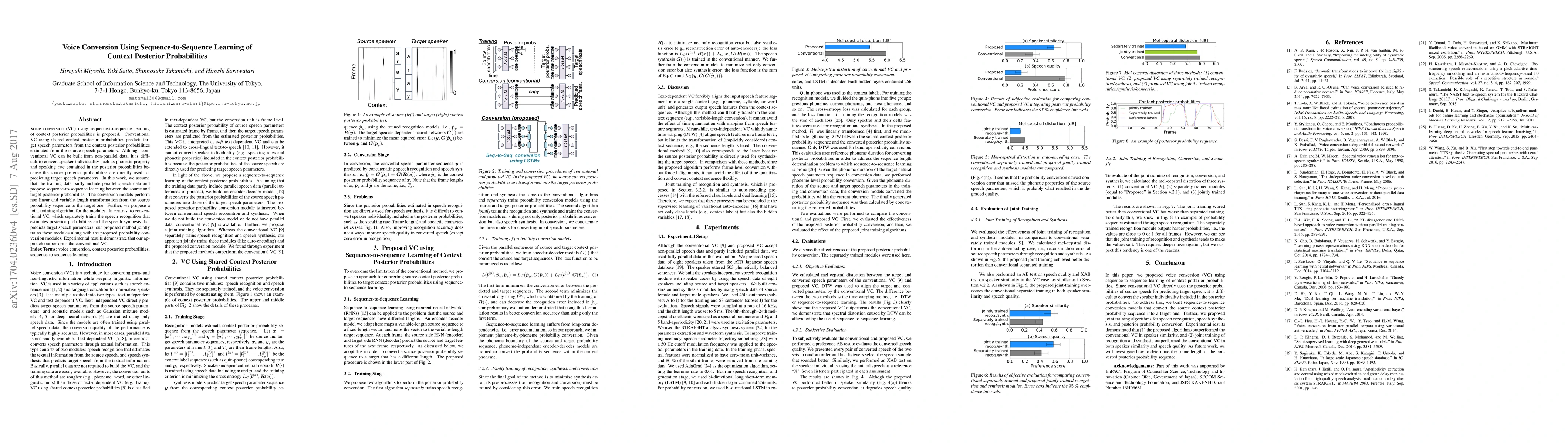 This paper proposes a voice conversion method using sequence-to-sequence learning of context posterior probabilities, which improves speaker individuality conversion by jointly training speech recognition and synthesis modules. Experimental results show superior performance compared to conventional methods.