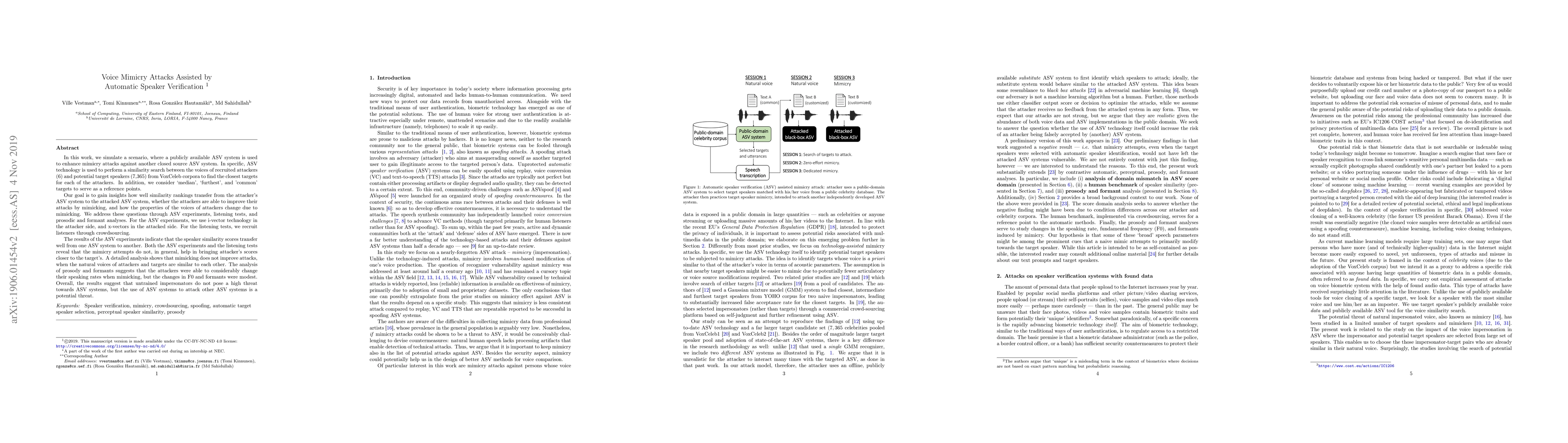In this work, we simulate a scenario, where a publicly available ASV system is used to enhance mimicry attacks against another closed source ASV system. In specific, ASV technology is used to perform a similarity search between the voices of recruited attackers (6) and potential target speakers (7,365) from VoxCeleb corpora to find the closest targets for each of the attackers. In addition, we consider 'median', 'furthest', and 'common' targets to serve as a reference points. Our goal is to gain insights how well similarity rankings transfer from the attacker's ASV system to the attacked ASV system, whether the attackers are able to improve their attacks by mimicking, and how the properties of the voices of attackers change due to mimicking. We address these questions through ASV experiments, listening tests, and prosodic and formant analyses. For the ASV experiments, we use i-vector technology in the attacker side, and x-vectors in the attacked side. For the listening tests, we recruit listeners through crowdsourcing. The results of the ASV experiments indicate that the speaker similarity scores transfer well from one ASV system to another. Both the ASV experiments and the listening tests reveal that the mimicry attempts do not, in general, help in bringing attacker's scores closer to the target's. A detailed analysis shows that mimicking does not improve attacks, when the natural voices of attackers and targets are similar to each other. The analysis of prosody and formants suggests that the attackers were able to considerably change their speaking rates when mimicking, but the changes in F0 and formants were modest. Overall, the results suggest that untrained impersonators do not pose a high threat towards ASV systems, but the use of ASV systems to attack other ASV systems is a potential threat.