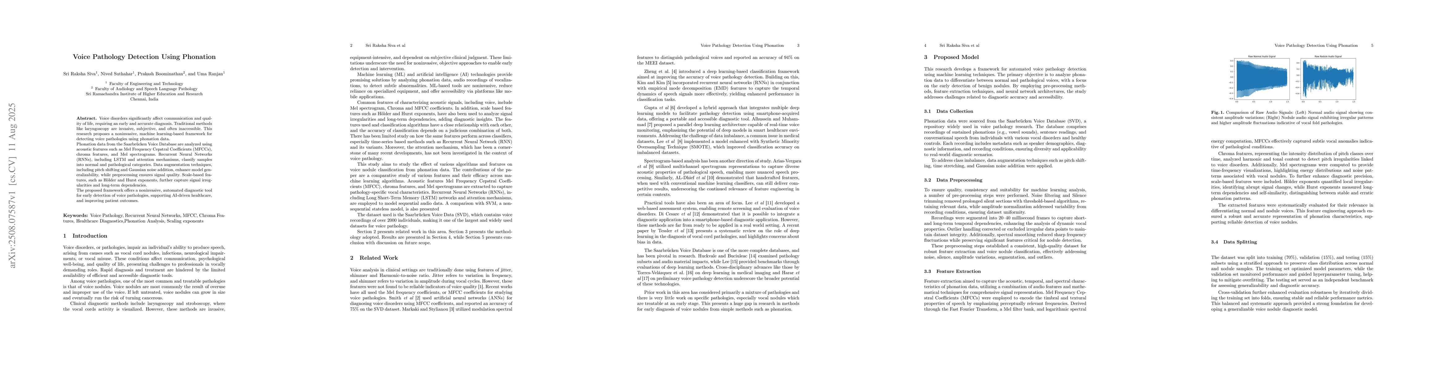 This research is significant as it presents a non-invasive, automated diagnostic tool for early detection of voice pathologies, supporting AI-driven healthcare and improving patient outcomes. It highlights the feasibility of developing scalable, non-invasive diagnostic tools that can be deployed in clinical and remote environments.