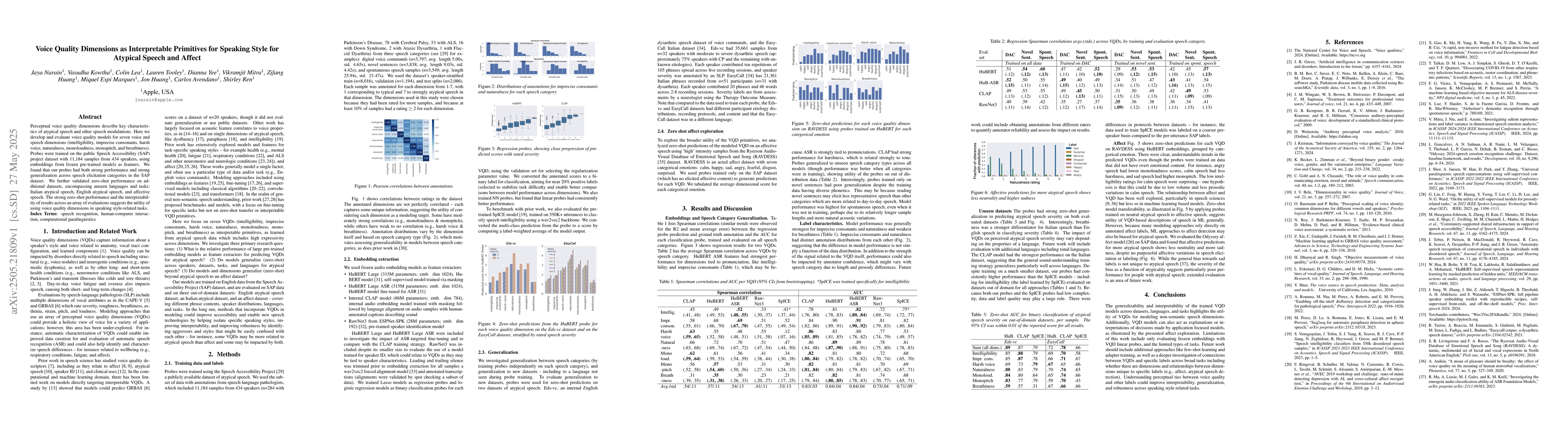 Researchers developed voice quality models to analyze atypical speech styles and found strong performance in various datasets, including unseen languages and tasks.