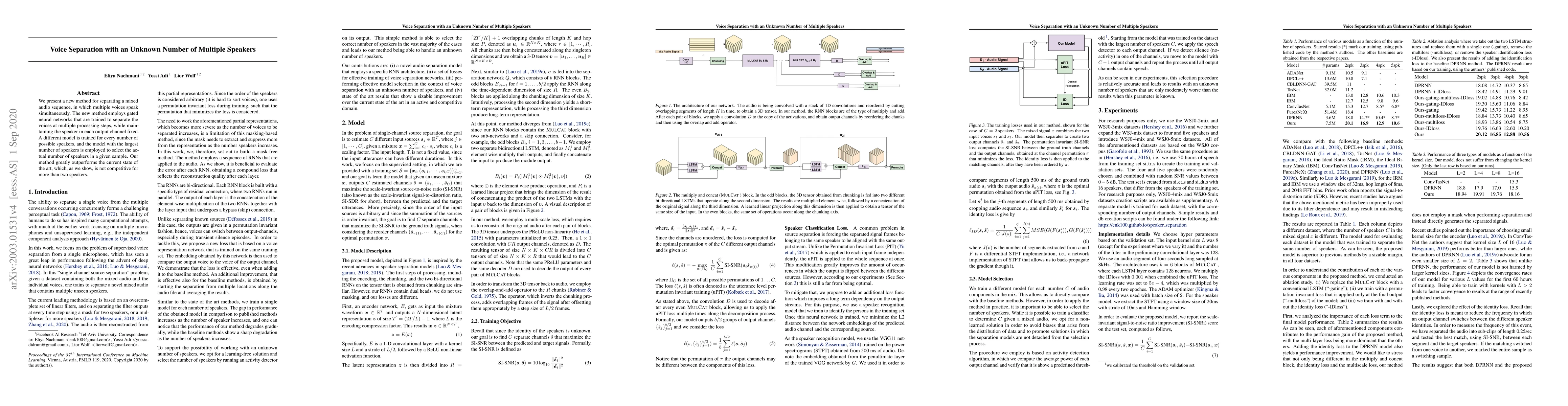 We present a new method for separating a mixed audio sequence, in which multiple voices speak simultaneously. The new method employs gated neural networks that are trained to separate the voices at multiple processing steps, while maintaining the speaker in each output channel fixed. A different model is trained for every number of possible speakers, and the model with the largest number of speakers is employed to select the actual number of speakers in a given sample. Our method greatly outperforms the current state of the art, which, as we show, is not competitive for more than two speakers.