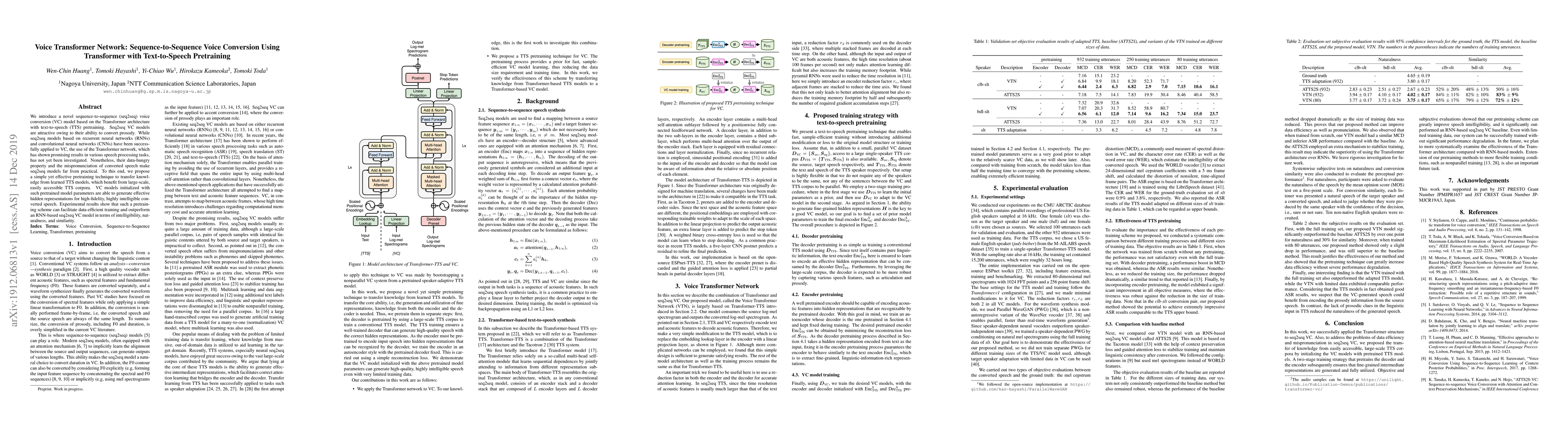 This paper proposes a sequence-to-sequence voice conversion model based on the Transformer architecture, utilizing text-to-speech pretraining to improve data efficiency and performance. Experimental results demonstrate superior intelligibility, naturalness, and similarity compared to RNN-based models.