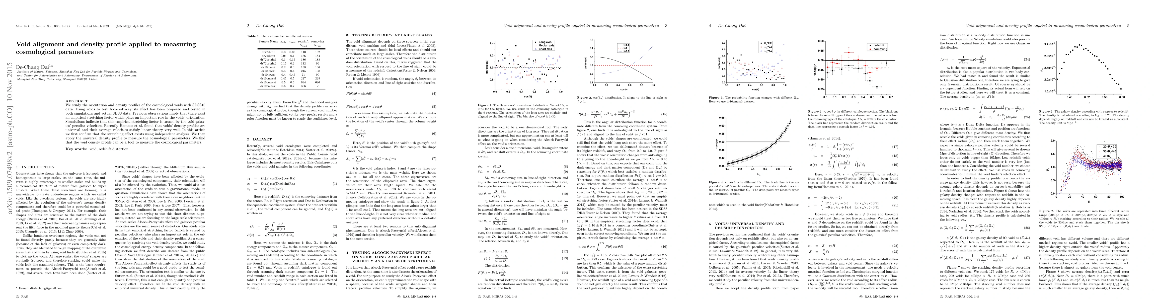 This paper investigates the orientation and density profiles of cosmological voids using SDSS10 data, confirming the existence of an empirical stretching factor due to void galaxies' peculiar velocities. The authors apply the universal density profile of voids to measure cosmological parameters, demonstrating that void density profiles can serve as a tool for such measurements.