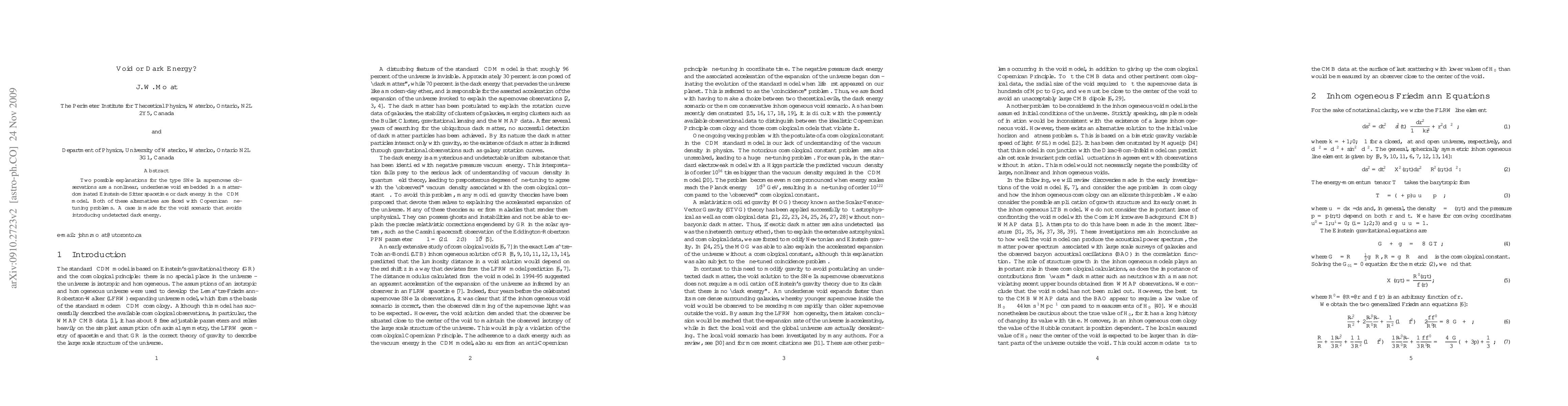 Two possible explanations for the type SNe Ia supernovae observations are a nonlinear, underdense void embedded in a matter-dominated Einstein-de Sitter spacetime or dark energy in the $\Lambda$CDM model. Both of these alternatives are faced with Copernican fine-tuning problems. A case is made for the void scenario that avoids introducing undetected dark energy.