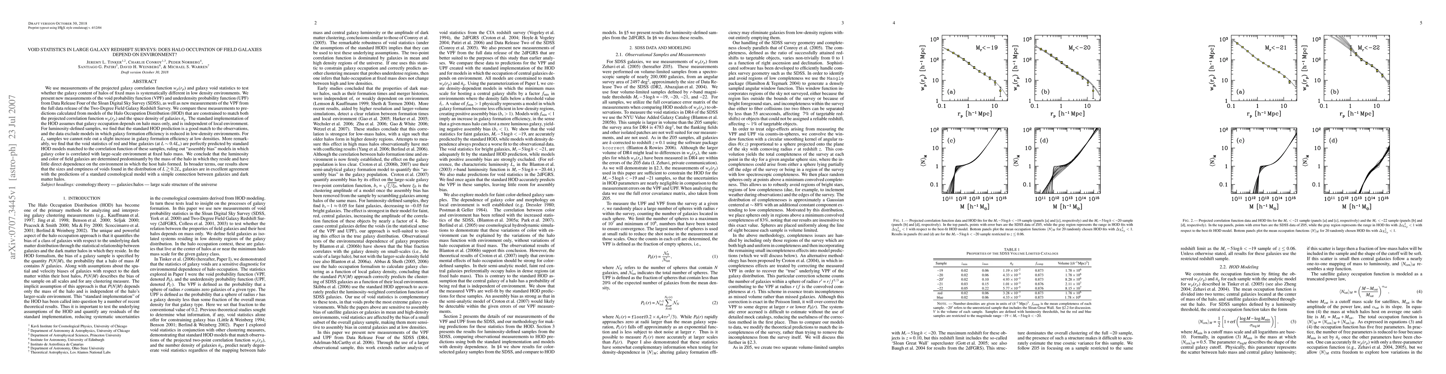 This paper investigates whether the galaxy content within halos of fixed mass varies with local environment using galaxy void statistics and correlation functions from the Sloan Digital Sky Survey and the Two-Degree Field Galaxy Redshift Survey. The findings suggest that galaxy luminosity and color are primarily determined by halo mass, not by the surrounding environment, supporting a standard cosmological model.