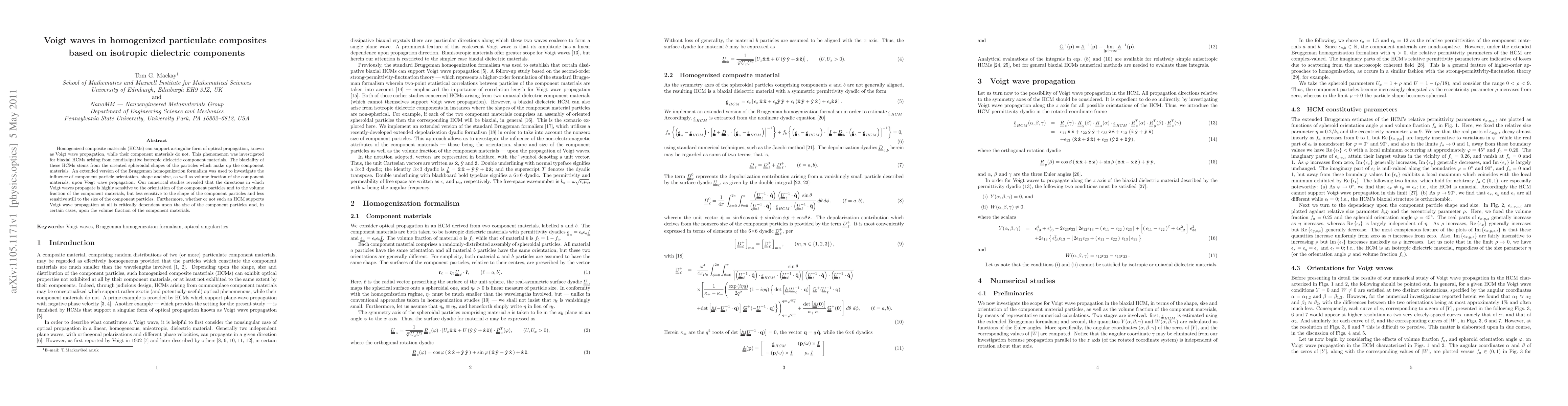 Homogenized composite materials (HCMs) can support a singular form of optical propagation, known as Voigt wave propagation, while their component materials do not. This phenomenon was investigated for biaxial HCMs arising from nondissipative isotropic dielectric component materials. The biaxiality of these HCMs stems from the oriented spheroidal shapes of the particles which make up the component materials. An extended version of the Bruggeman homogenization formalism was used to investigate the influence of component particle orientation, shape and size, as well as volume fraction of the component materials, upon Voigt wave propagation. Our numerical studies revealed that the directions in which Voigt waves propagate is highly sensitive to the orientation of the component particles and to the volume fraction of the component materials, but less sensitive to the shape of the component particles and less sensitive still to the size of the component particles. Furthermore, whether or not such an HCM supports Voigt wave propagation at all is critically dependent upon the size of the component particles and, in certain cases, upon the volume fraction of the component materials.