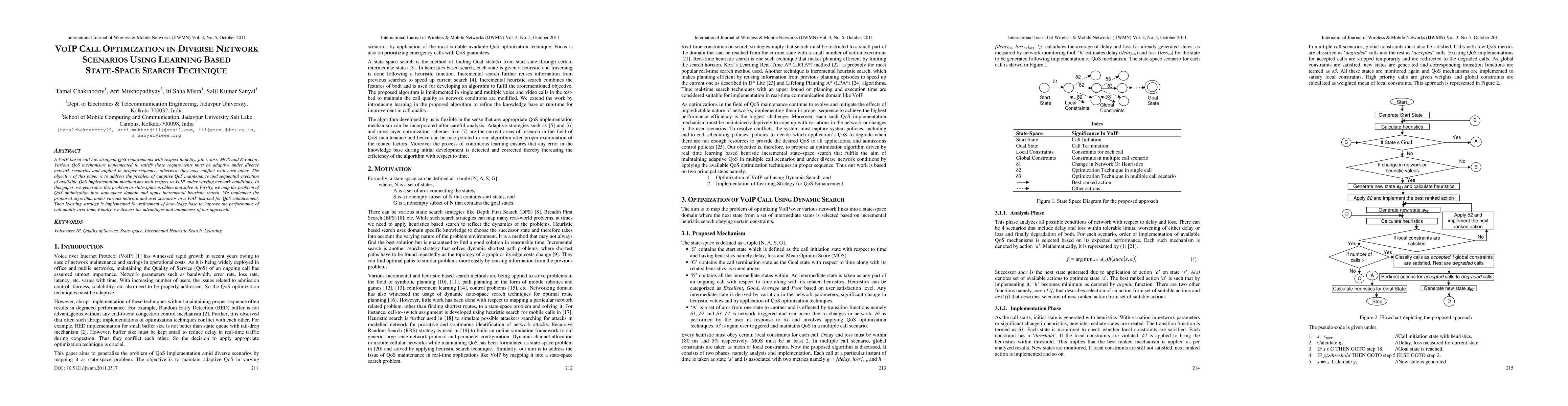 A VoIP based call has stringent QoS requirements with respect to delay, jitter, loss, MOS and R-Factor. Various QoS mechanisms implemented to satisfy these requirements must be adaptive under diverse network scenarios and applied in proper sequence, otherwise they may conflict with each other. The objective of this paper is to address the problem of adaptive QoS maintenance and sequential execution of available QoS implementation mechanisms with respect to VoIP under varying network conditions. In this paper, we generalize this problem as state-space problem and solve it. Firstly, we map the problem of QoS optimization into state-space domain and apply incremental heuristic search. We implement the proposed algorithm under various network and user scenarios in a VoIP test-bed for QoS enhancement. Then learning strategy is implemented for refinement of knowledge base to improve the performance of call quality over time. Finally, we discuss the advantages and uniqueness of our approach.