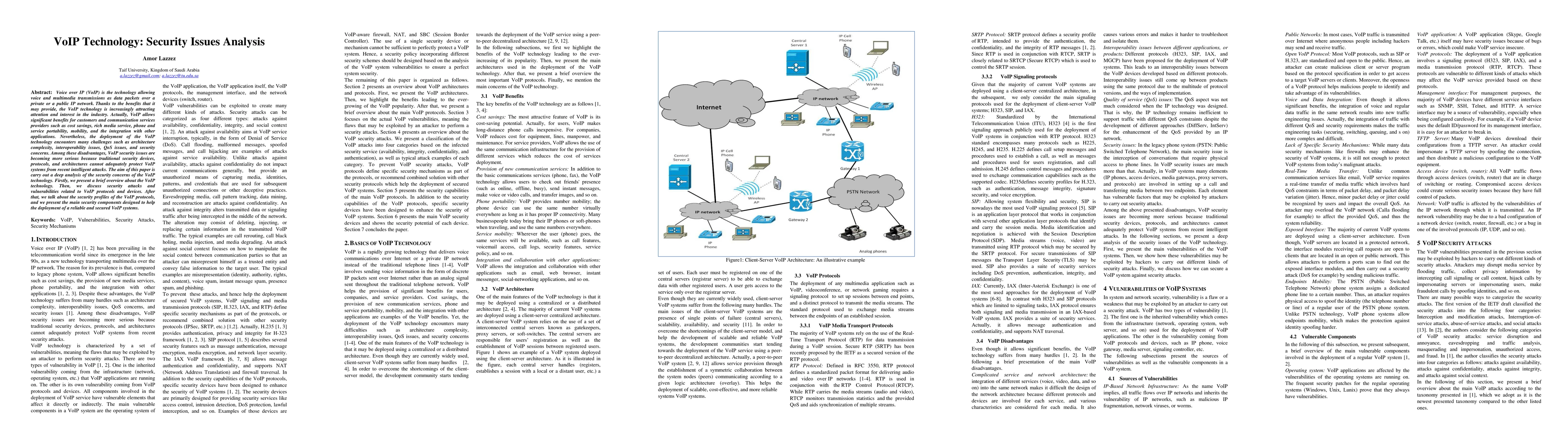 The paper presents a comprehensive analysis of VoIP security issues, covering an overview of VoIP technology, security vulnerabilities, attacks, and countermeasures.