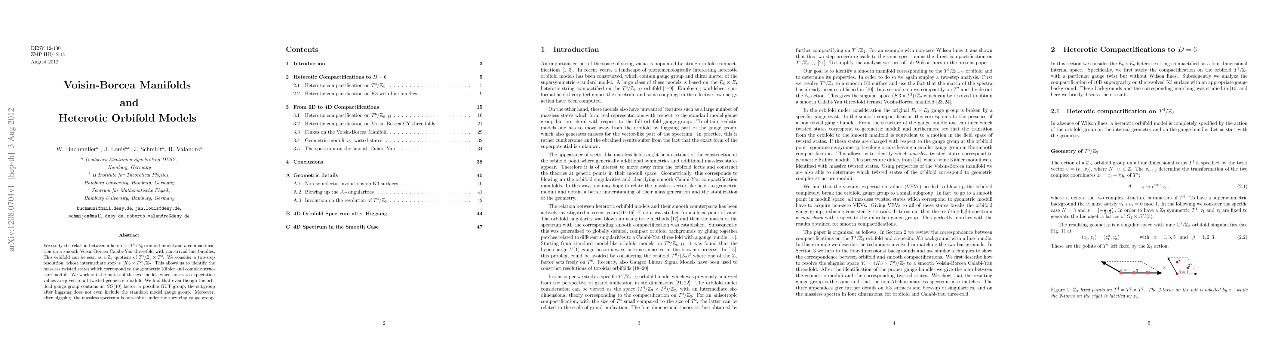 This paper investigates the connection between a heterotic orbifold model and a Voisin-Borcea Calabi-Yau three-fold, revealing a two-step resolution leading to identification of twisted massless states. Despite the orbifold containing an SO(10) factor, the surviving gauge group post-higgsing does not include the standard model and the massless spectrum is non-chiral.