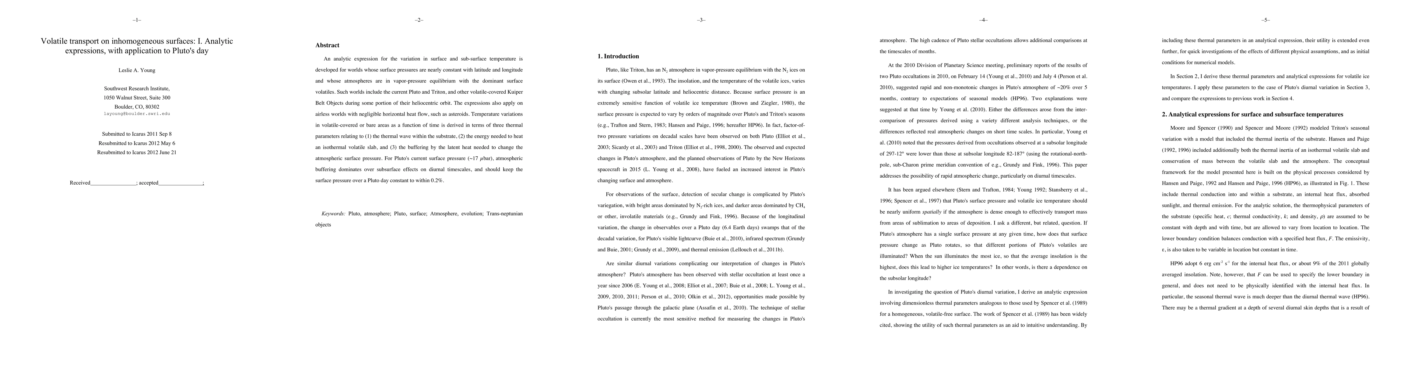 An analytic expression for the variation in surface and sub-surface temperature is developed for worlds whose surface pressures are nearly constant with latitude and longitude and whose atmospheres are in vapor-pressure equilibrium with the dominant surface volatiles. Such worlds include the current Pluto and Triton, and other volatile-covered Kuiper Belt Objects during some portion of their heliocentric orbit. The expressions also apply on worlds with negligible horizontal heat flow, such as asteroids. Temperature variations in volatile-covered or bare areas as a function of time is derived in terms of three thermal parameters relating to (1) the thermal wave within the substrate, (2) the energy needed to heat an isothermal volatile slab, and (3) the buffering by the latent heat needed to change the atmospheric surface pressure. For Pluto's current surface pressure (~17 microbar), atmospheric buffering dominates over subsurface effects on diurnal timescales, and should keep the surface pressure over a Pluto day constant to within 0.2%.