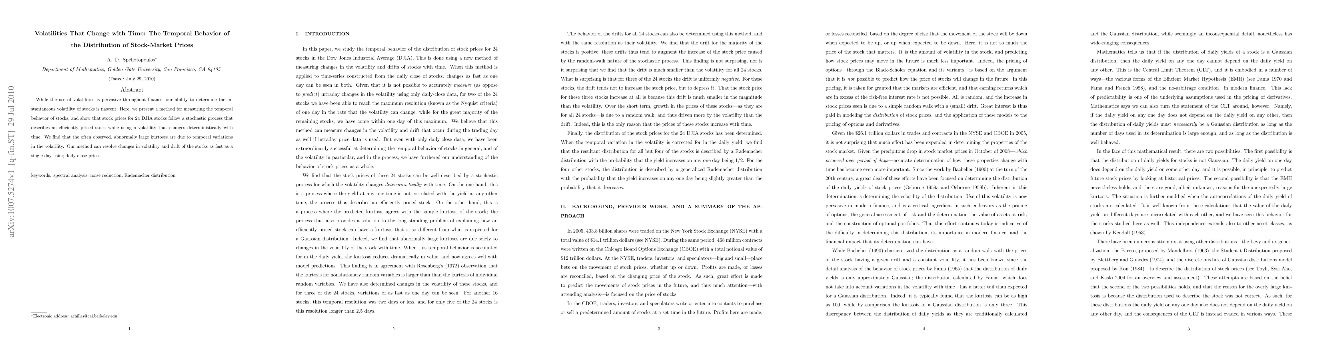 Researchers developed a method to measure the temporal behavior of stock prices, finding that volatility changes over time and often appears abnormally high due to these changes. The study resolves daily changes in volatility with single-day resolution using daily close prices.