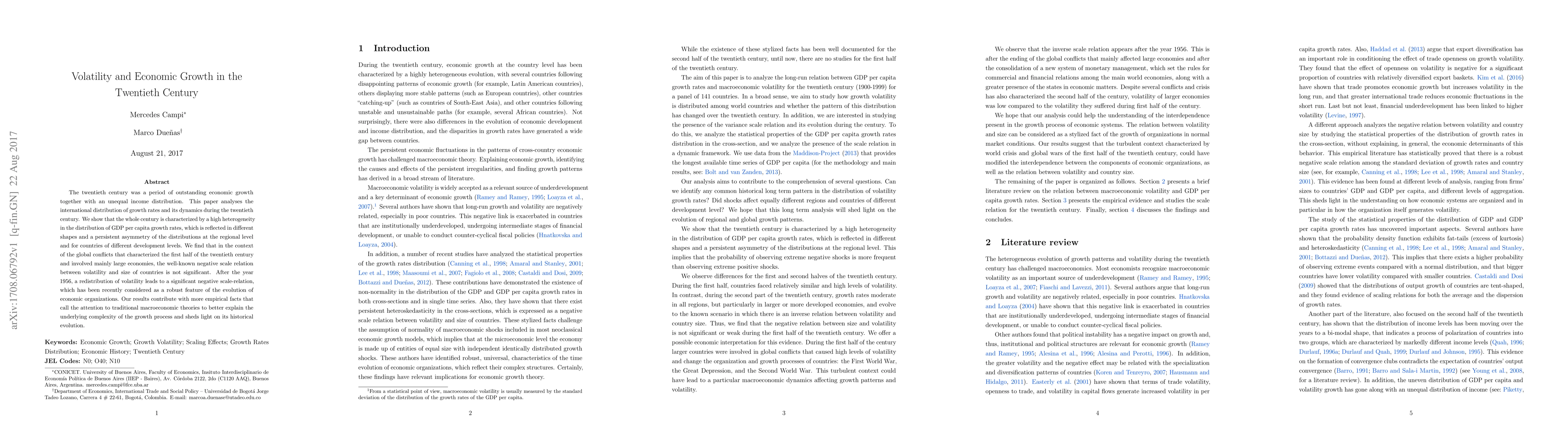 This paper examines the economic growth and income distribution dynamics throughout the twentieth century, revealing high heterogeneity in GDP per capita growth rates. It finds that global conflicts initially did not significantly impact the volatility-size relationship, but post-1956, a redistribution of volatility established a robust negative scale-relation between volatility and country size.