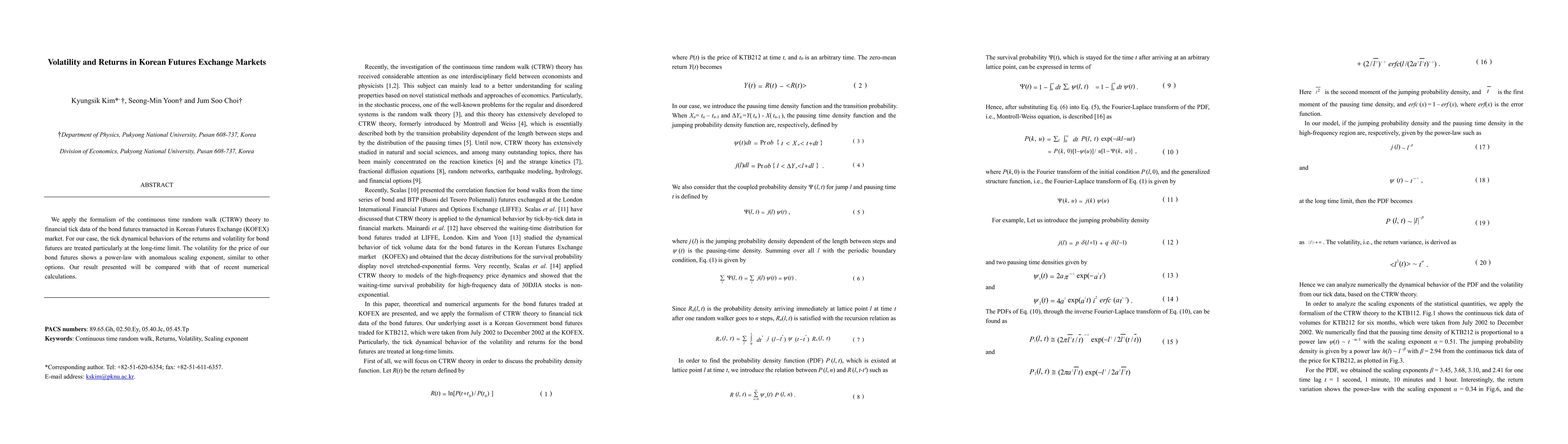This study uses a mathematical model to analyze volatility and returns in the Korean Futures Exchange market, finding that bond futures prices exhibit power-law behavior with an anomalous scaling exponent similar to other options.