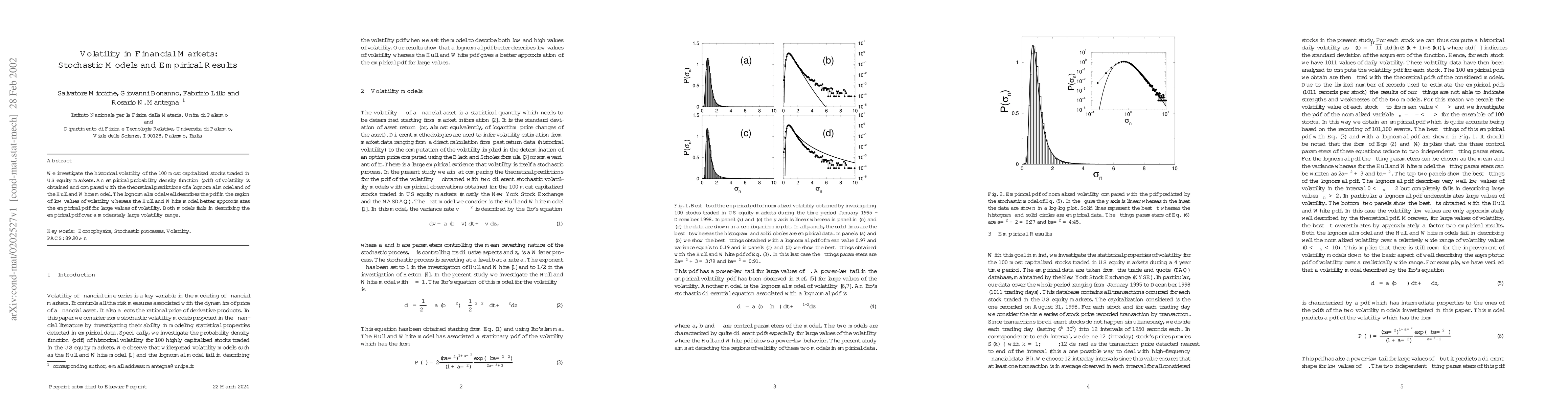 We investigate the historical volatility of the 100 most capitalized stocks traded in US equity markets. An empirical probability density function (pdf) of volatility is obtained and compared with the theoretical predictions of a lognormal model and of the Hull and White model. The lognormal model well describes the pdf in the region of low values of volatility whereas the Hull and White model better approximates the empirical pdf for large values of volatility. Both models fails in describing the empirical pdf over a moderately large volatility range.