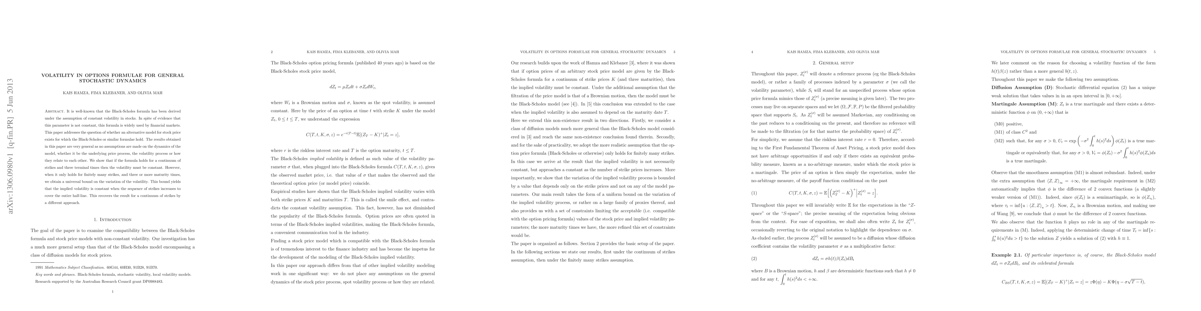 It is well-known that the Black-Scholes formula has been derived under the assumption of constant volatility in stocks. In spite of evidence that this parameter is not constant, this formula is widely used by financial markets. This paper addresses the question of whether an alternative model for stock price exists for which the Black-Scholes or similar formulae hold. The results obtained in this paper are very general as no assumptions are made on the dynamics of the model, whether it be the underlying price process, the volatility process or how they relate to each other. We show that if the formula holds for a continuum of strikes and three terminal times, then the volatility must be constant. However, when it only holds for finitely many strikes, and three or more maturity times, we obtain a universal bound on the variation of the volatility. This bound yields that the implied volatility is constant when the sequence of strikes increases to cover the entire half-line. This recovers the result for a continuum of strikes by a different approach.