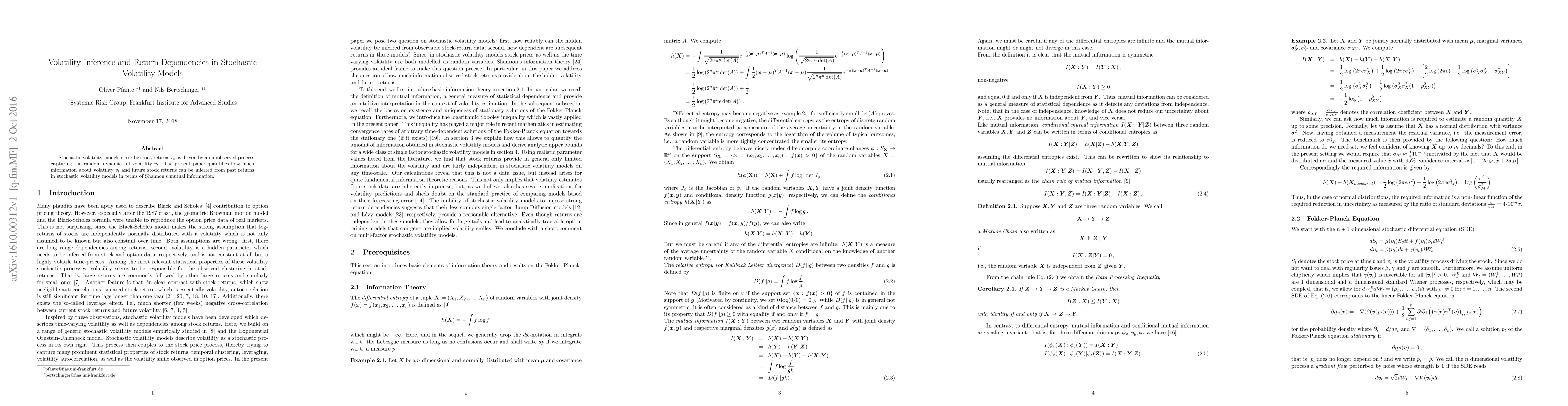 This paper quantifies the information about future stock returns and volatility in stochastic volatility models using Shannon's mutual information, focusing on how past returns can infer these dynamics. The study highlights the dependencies and volatility inference mechanisms in such models.
