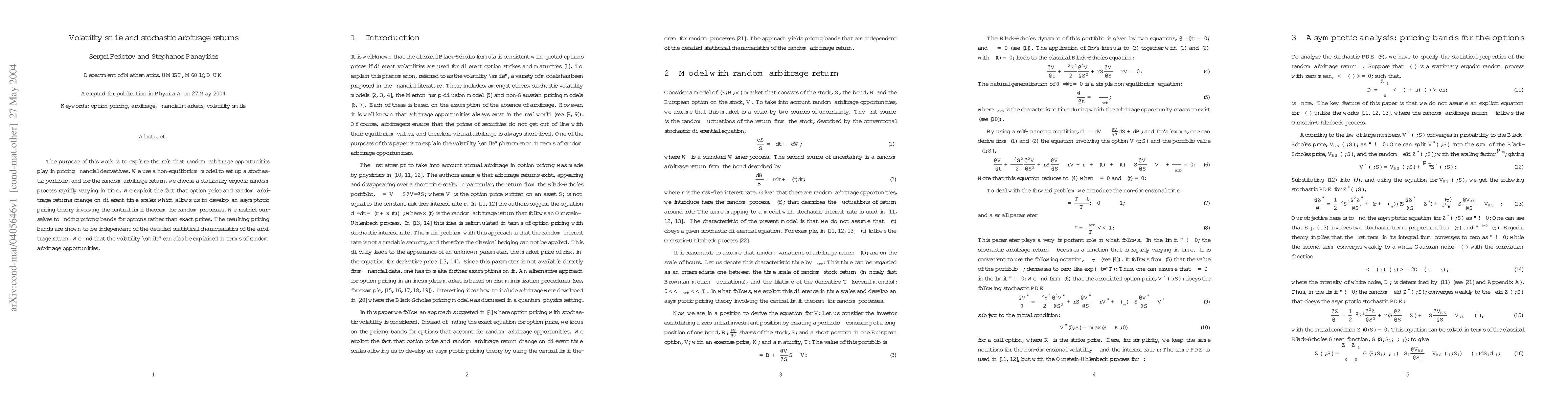Researchers used a non-equilibrium model to explore how random arbitrage opportunities affect option pricing, finding that volatility 'smile' can be explained by these opportunities.