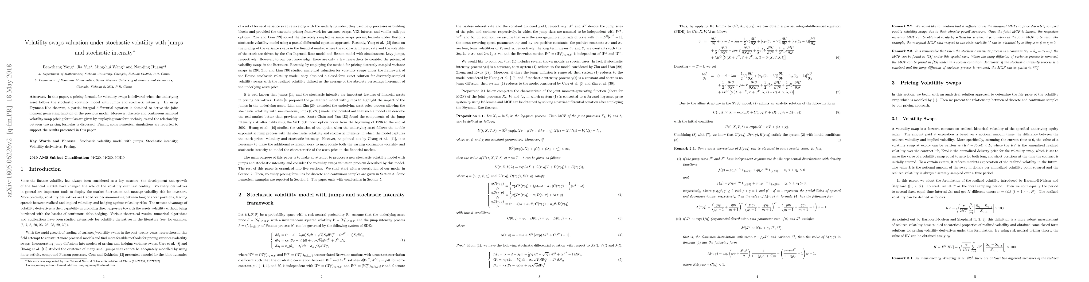 This paper presents a pricing formula for volatility swaps under a stochastic volatility model incorporating jumps and stochastic intensity, deriving it via the Feynman-Kac theorem. It also provides discrete and continuous sampled pricing formulas, and validates the results through numerical simulations.