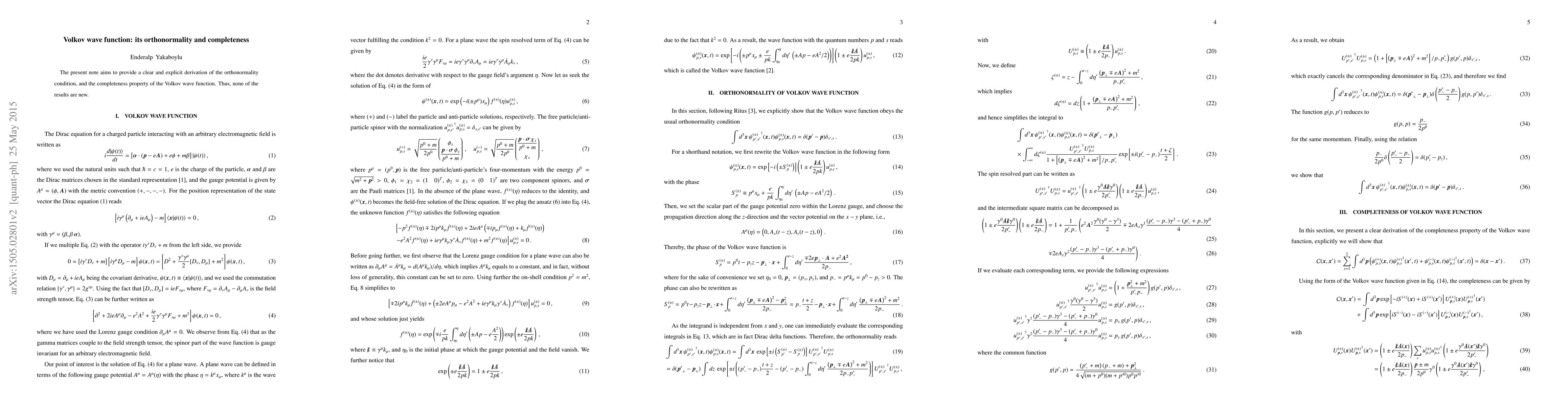This paper clarifies the orthonormality and completeness properties of the Volkov wave function through a clear derivation, providing no new results, but contributing to existing knowledge in the field.
