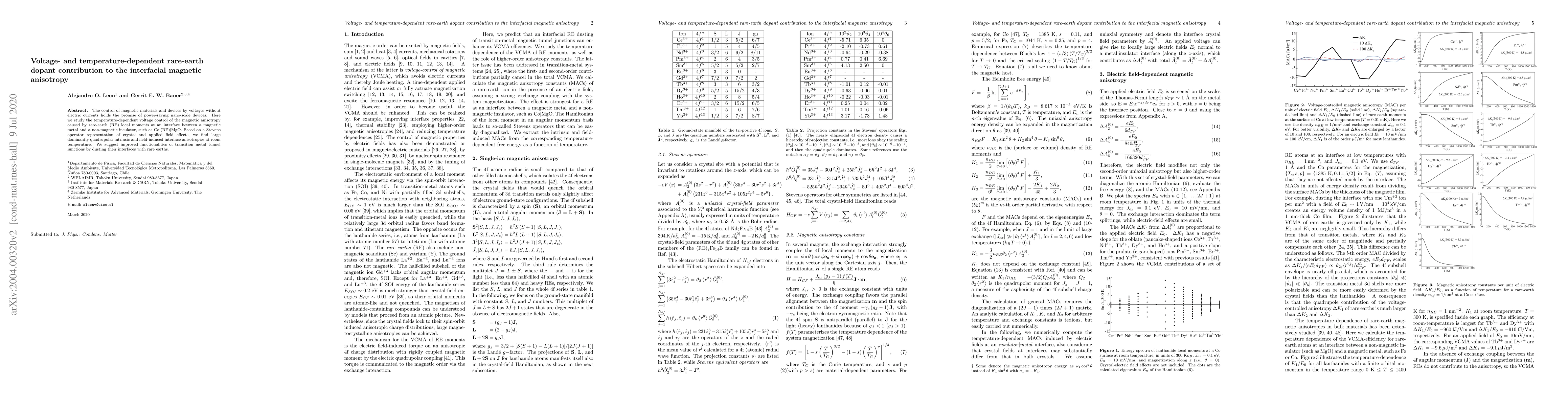 This paper investigates the voltage- and temperature-dependent magnetic anisotropy at the interface between a magnetic metal and a non-magnetic insulator, driven by rare-earth dopants. It reveals significant quadrupolar anisotropies at room temperature, suggesting enhanced functionalities for nanoscale devices.