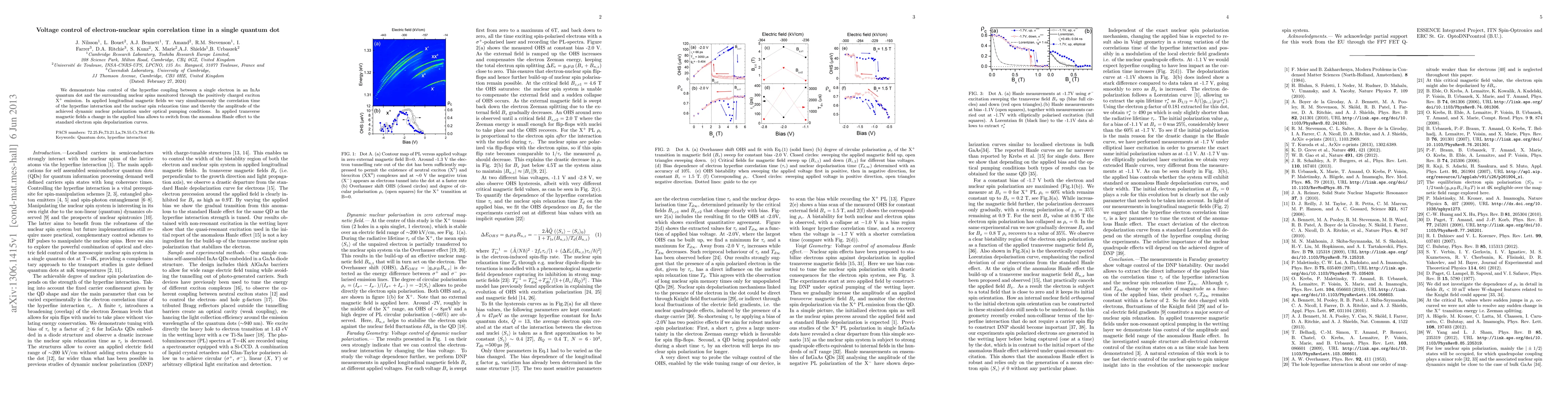 This paper demonstrates how varying the bias voltage can control the hyperfine coupling between an electron spin in an InAs quantum dot and surrounding nuclear spins, affecting both the hyperfine interaction correlation time and nuclear spin relaxation time, thus influencing dynamic nuclear polarization. Additionally, the bias voltage can switch between different electron spin depolarization effects under transverse magnetic fields.
