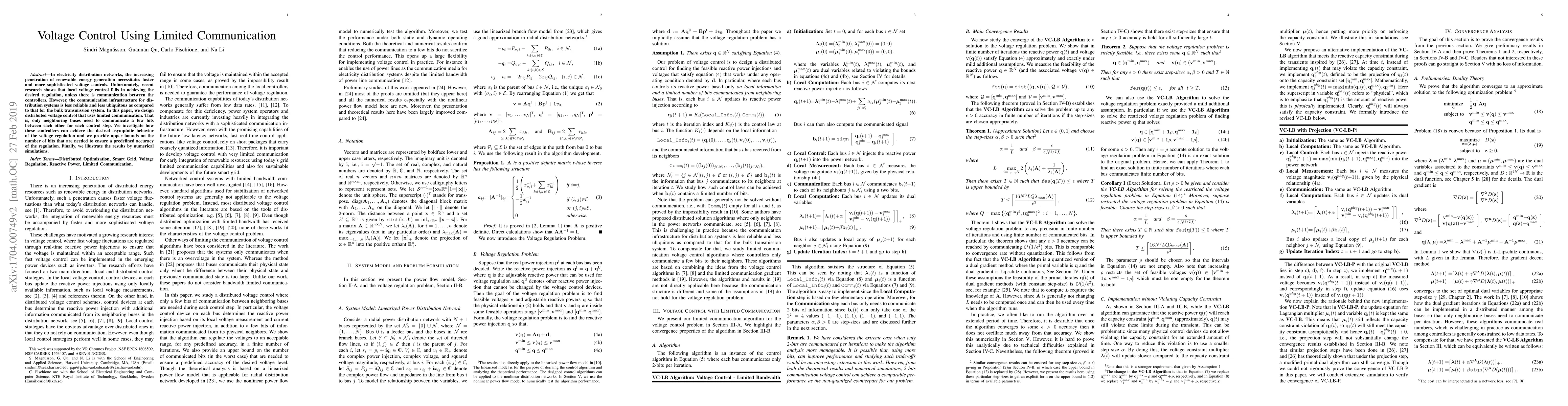 This paper proposes a distributed voltage control method for electricity distribution networks that relies on limited communication between neighboring buses to achieve effective voltage regulation, providing upper bounds on the required communication bits for predefined accuracy and validating results through numerical simulations.