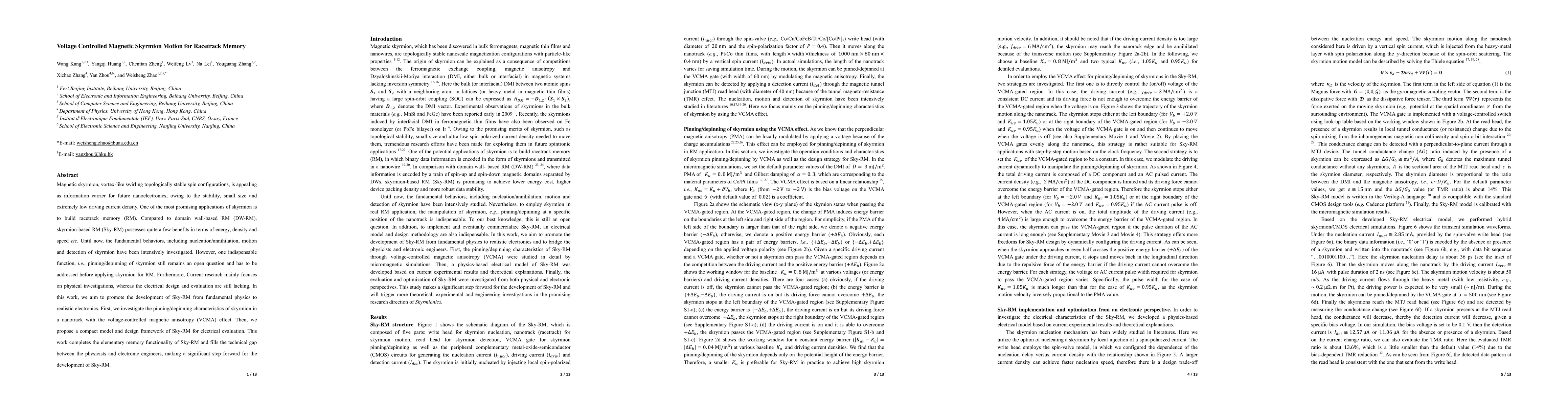 The paper presents a comprehensive electrical model and design framework for Sky-RM, incorporating the VCMA effect for voltage-controlled skyrmion motion, nucleation, and detection.