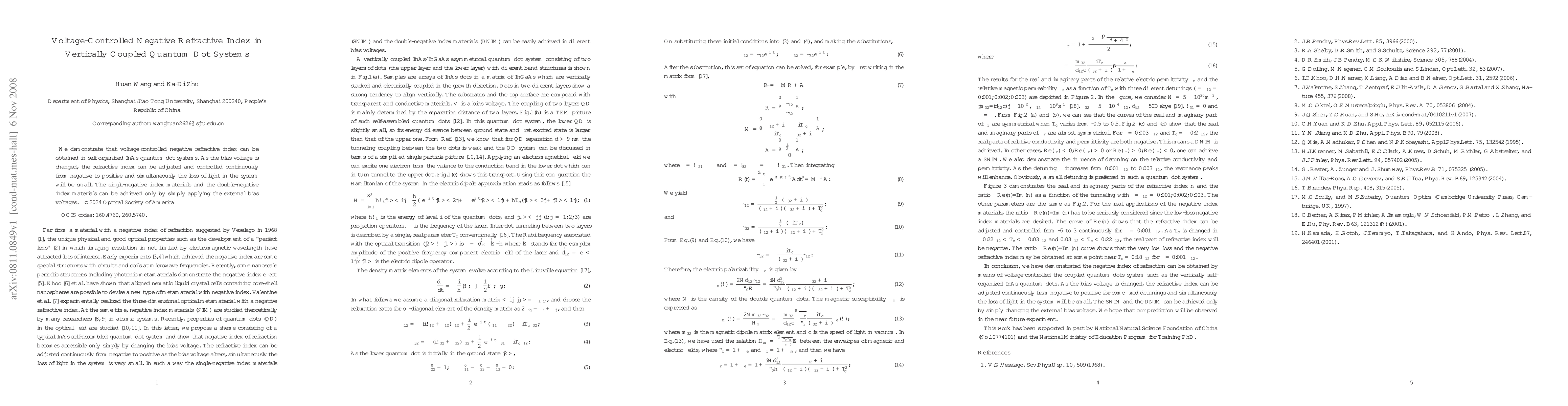 This research demonstrates voltage-controlled negative index in self-organized InAs quantum dot systems, where the refractive index can be continuously adjusted from -7 to 7 under varying bias voltages, with minimal light absorption. Both single-negative and double-negative index materials are attainable at different voltage levels.