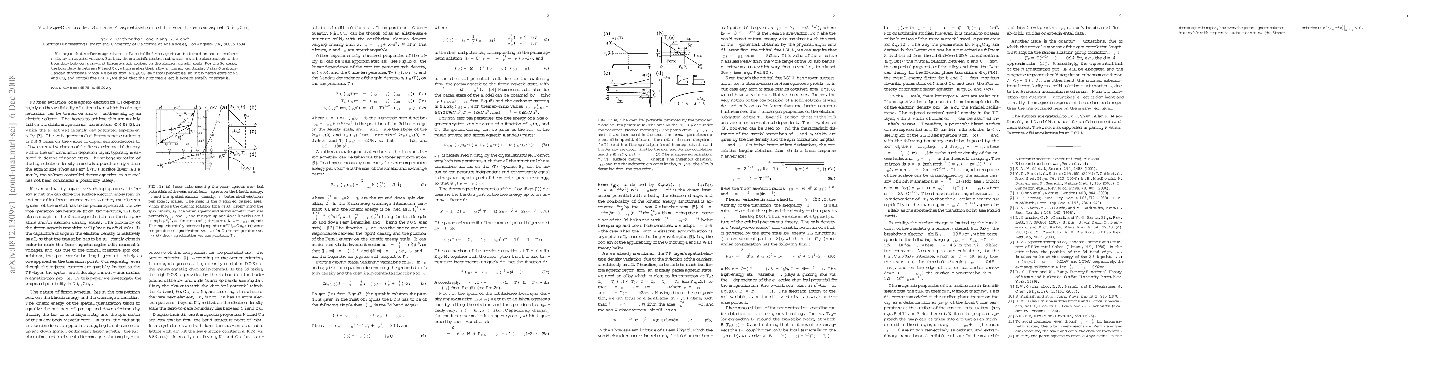 We argue that surface magnetization of a metallic ferromagnet can be turned on and off isothermally by an applied voltage. For this, the material's electron subsystem must be close enough to the boundary between para- and ferromagnetic regions on the electron density scale. For the 3d series, the boundary is between Ni and Cu, which makes their alloy a primary candidate. Using Ginzburg-Landau functional, which we build from Ni_(1-x)Cu_x empirical properties, ab-initio parameters of Ni and Cu, and orbital-free LSDA, we show that the proposed effect is experimentally observable.