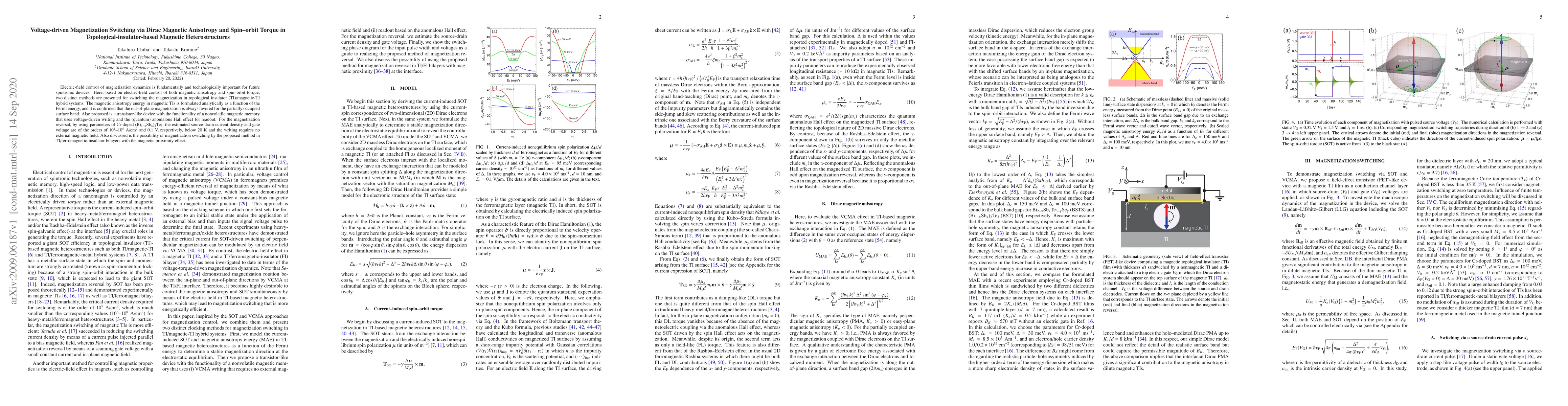 This research presents two electric-field-controlled methods for magnetization switching in topological insulator/magnetic topological insulator heterostructures, utilizing Dirac magnetic anisotropy and spin-orbit torque. A proposed transistor-like device enables voltage-driven magnetization reversal at low temperatures with minimal external magnetic fields.